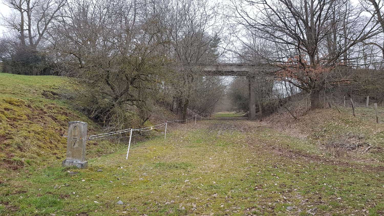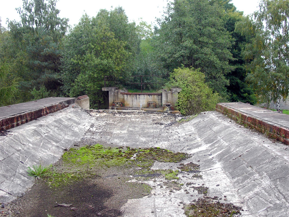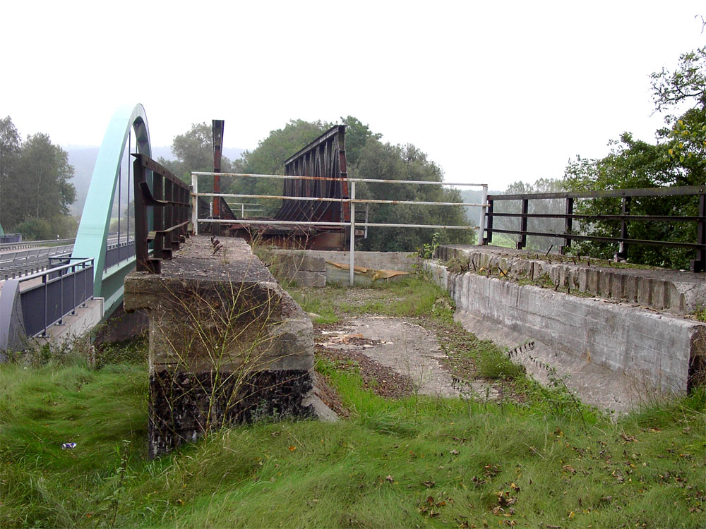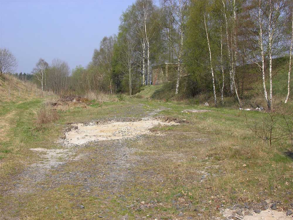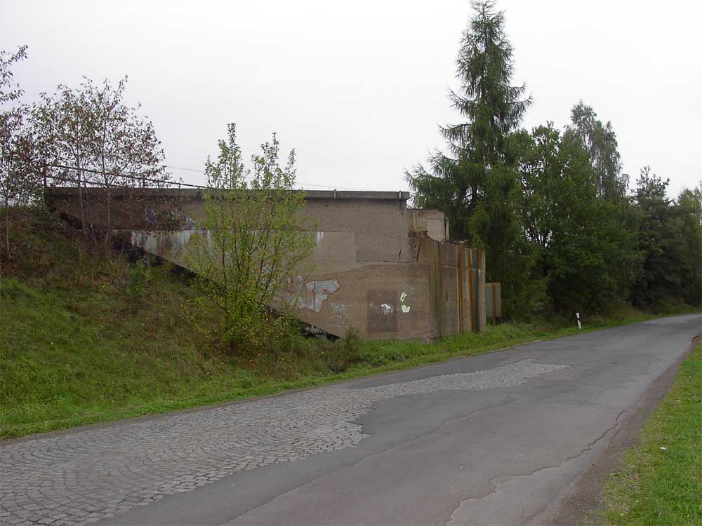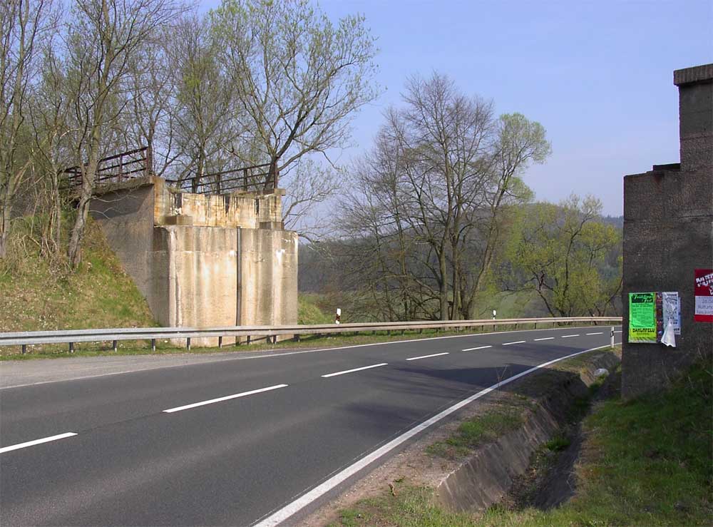 Widerlager der ehemaligen Brücke über die B 84 zwischen km 2,4 und 2,5