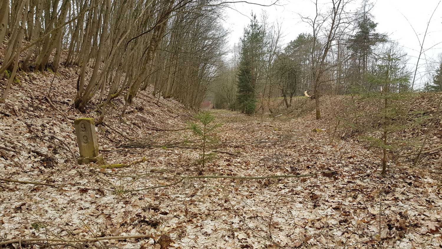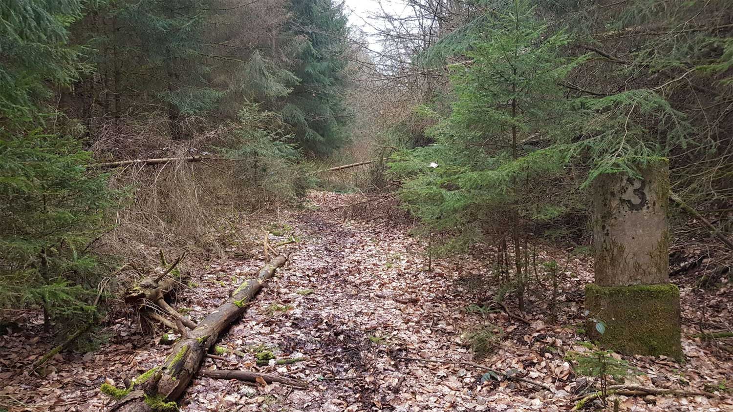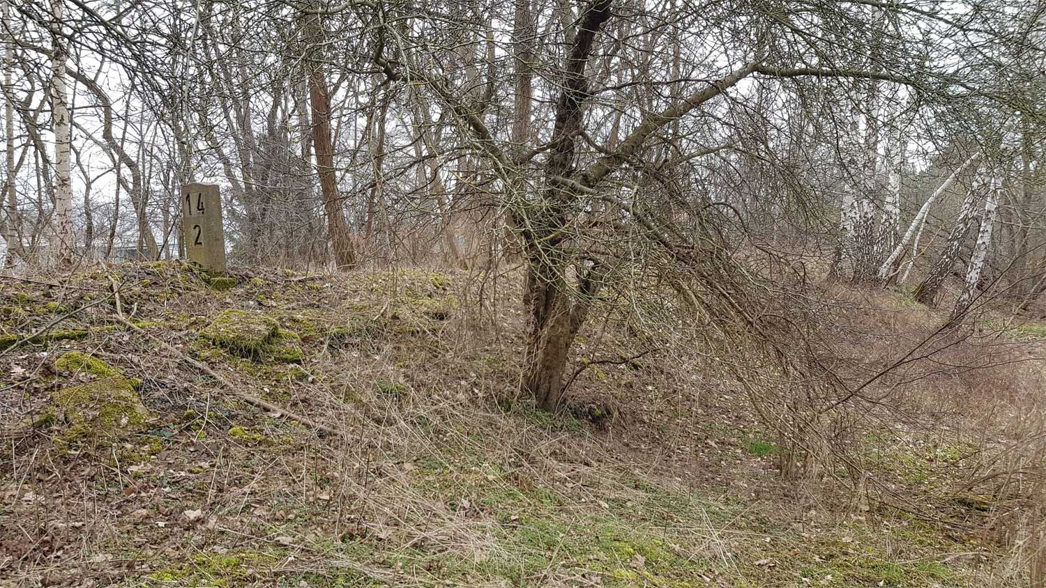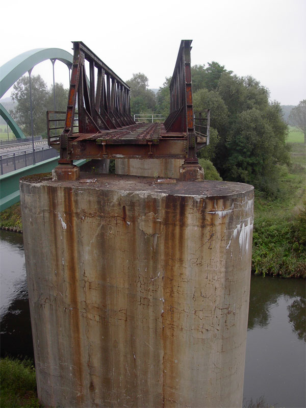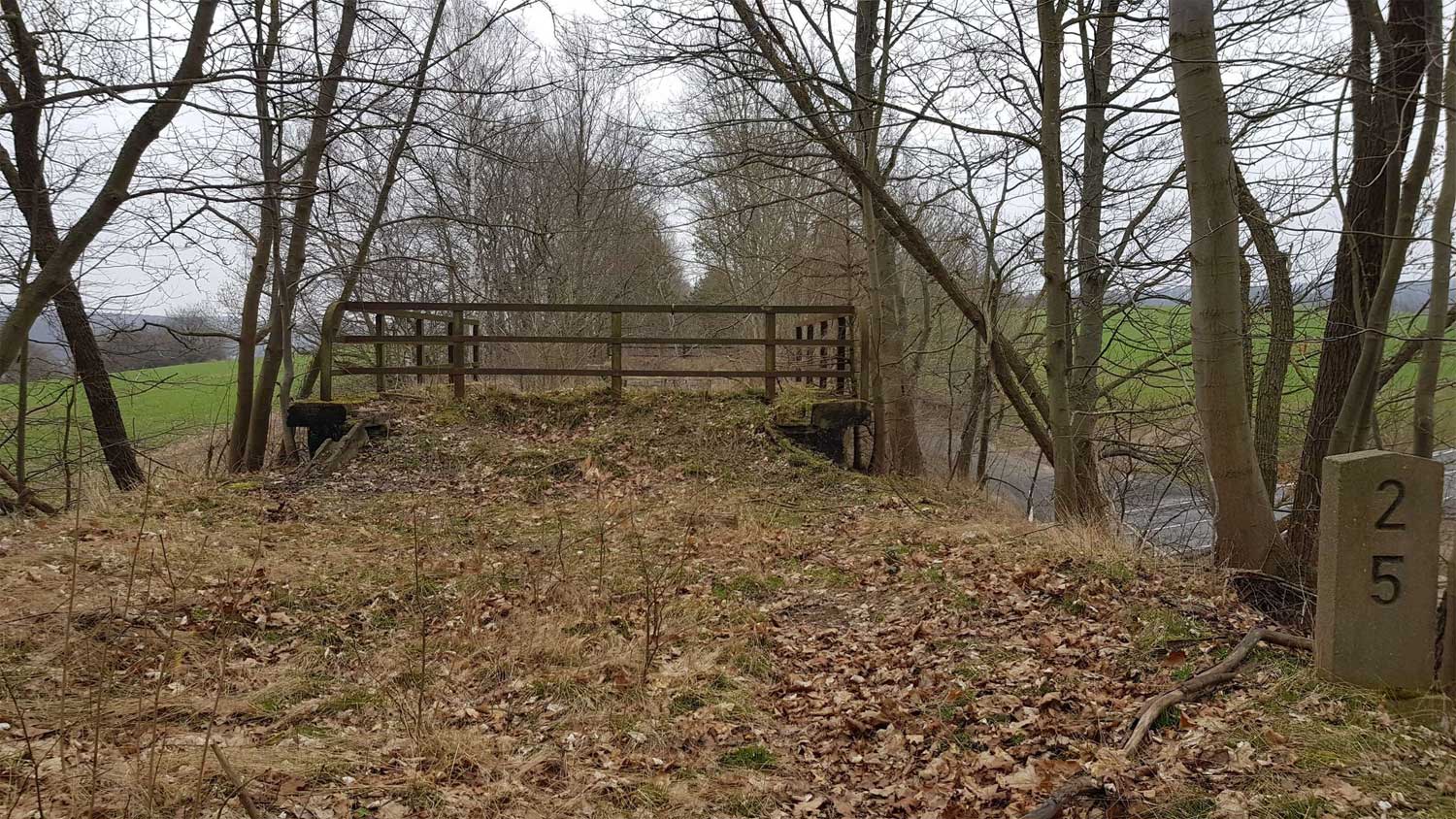 Widerlager der ehemaligen Brücke über die B 84 zwischen km 2,4 und 2,5
