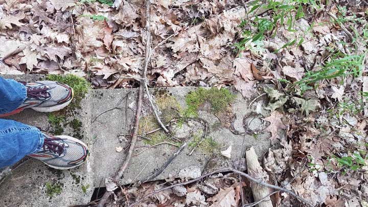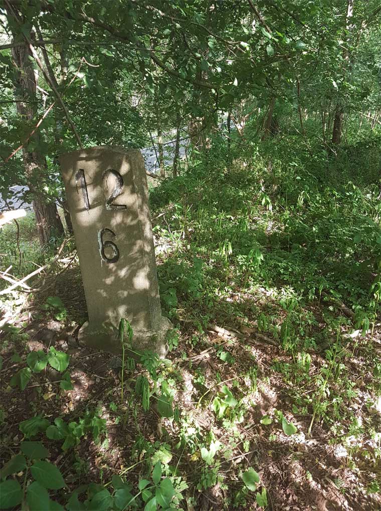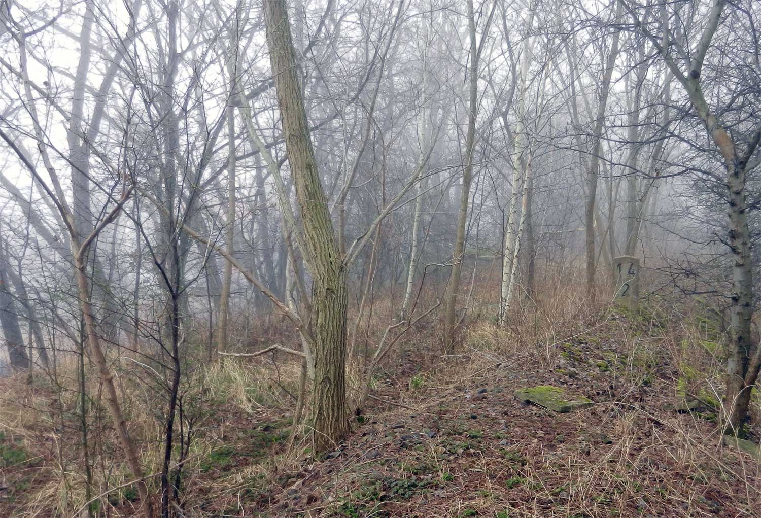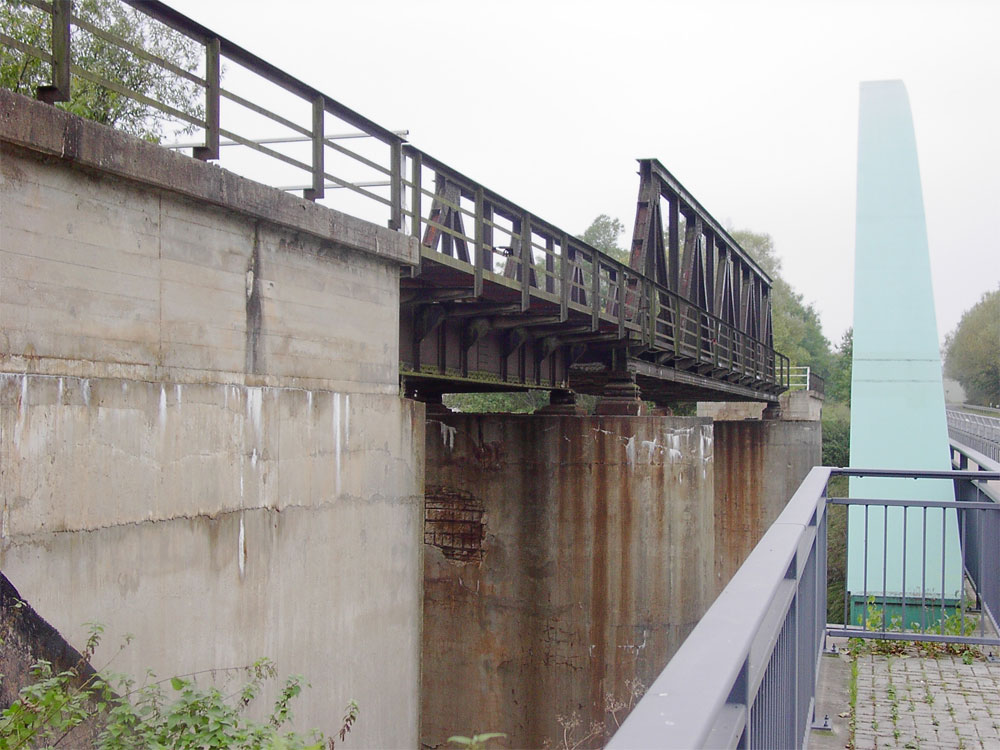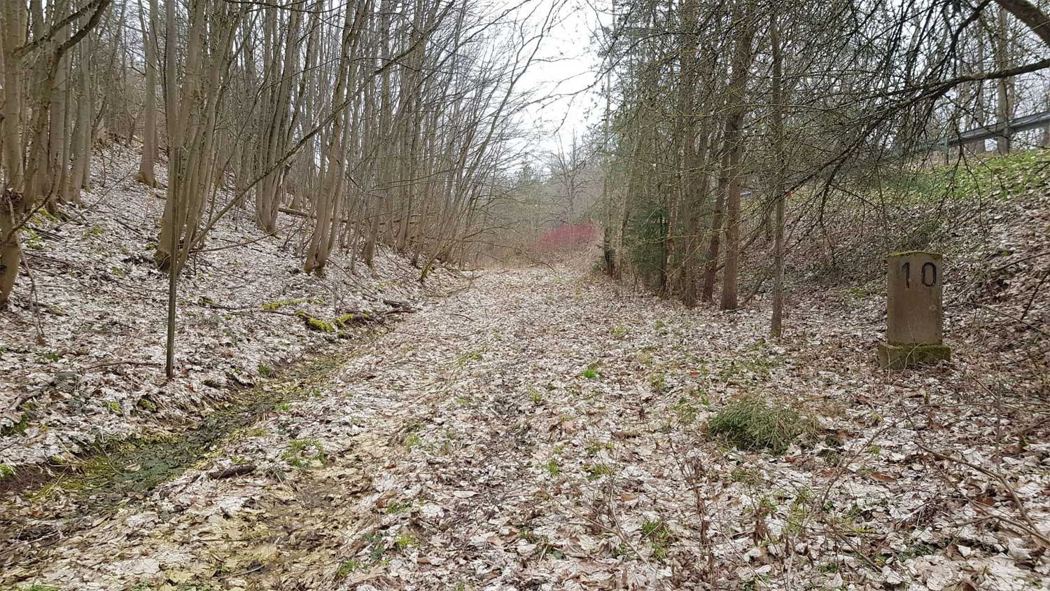 Widerlager der ehemaligen Brücke über die B 84 zwischen km 2,4 und 2,5