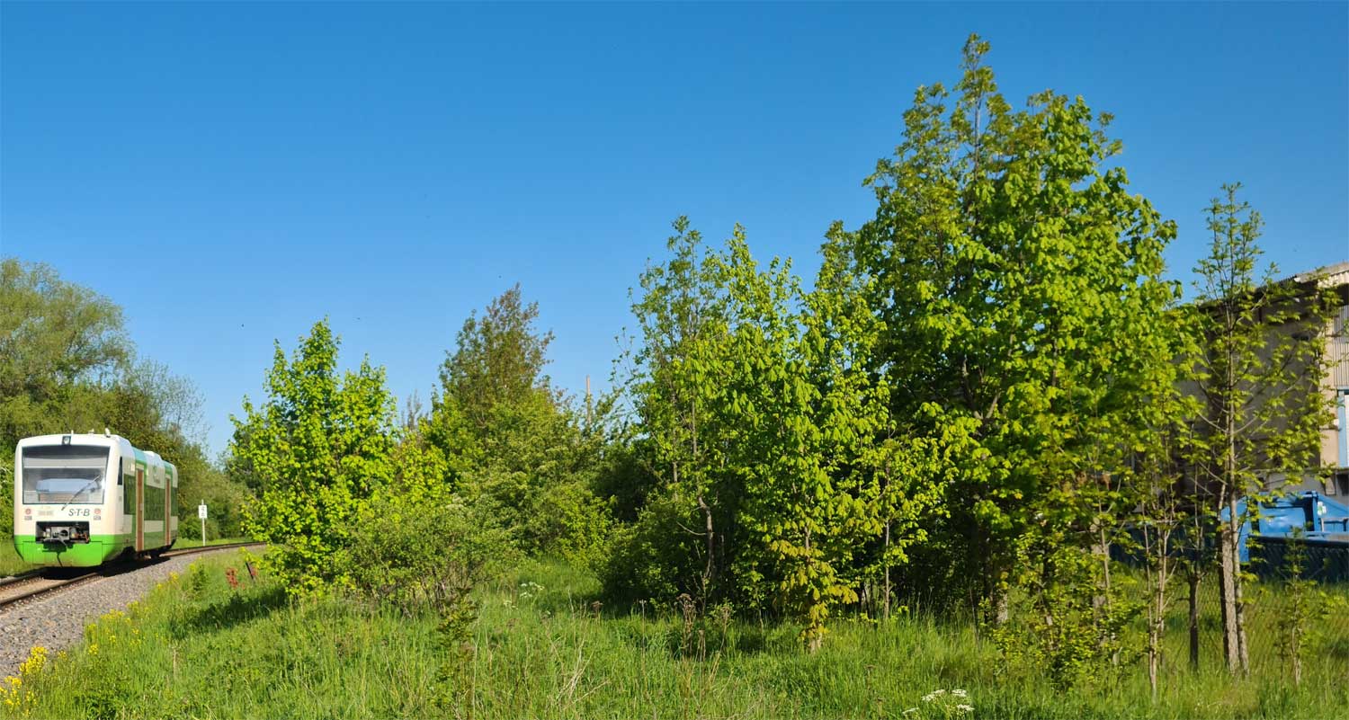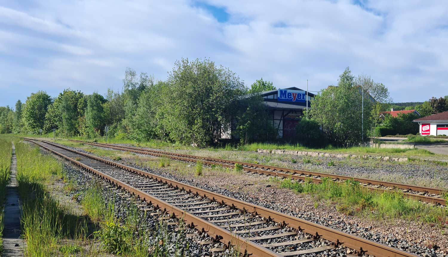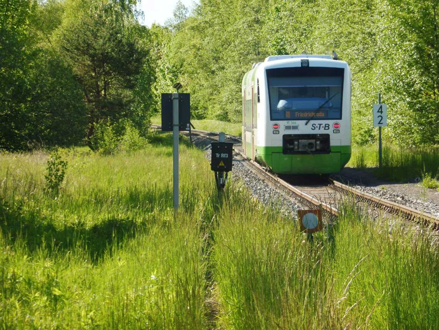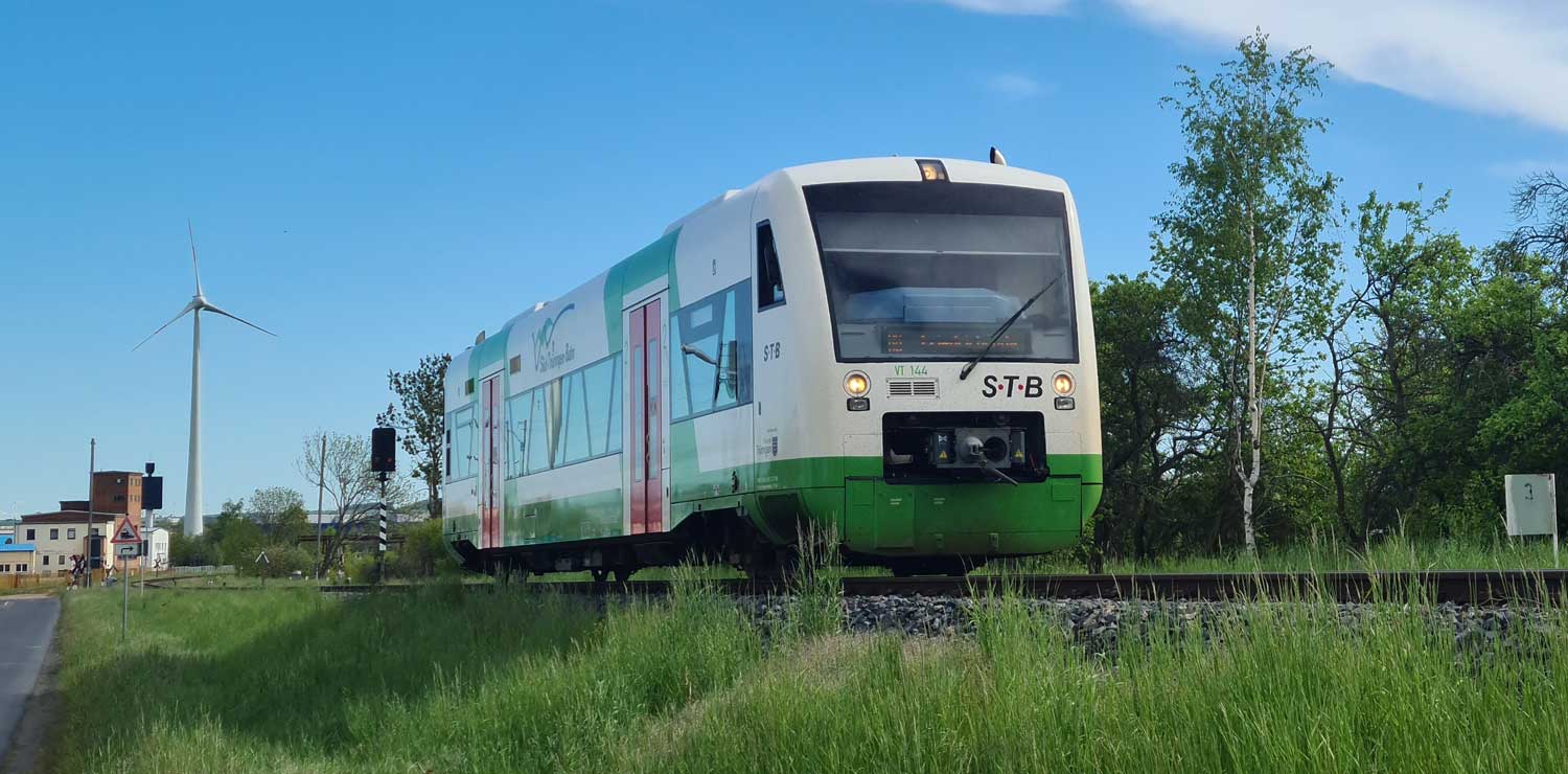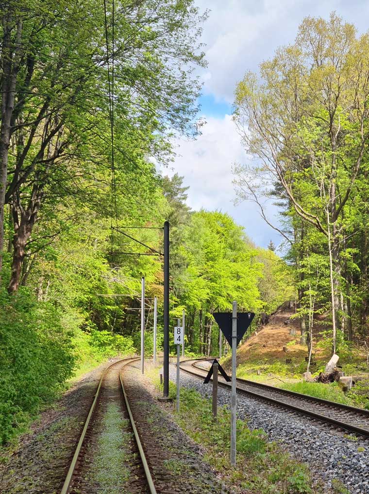 Links die Gleise der Thüringer Waldbahn