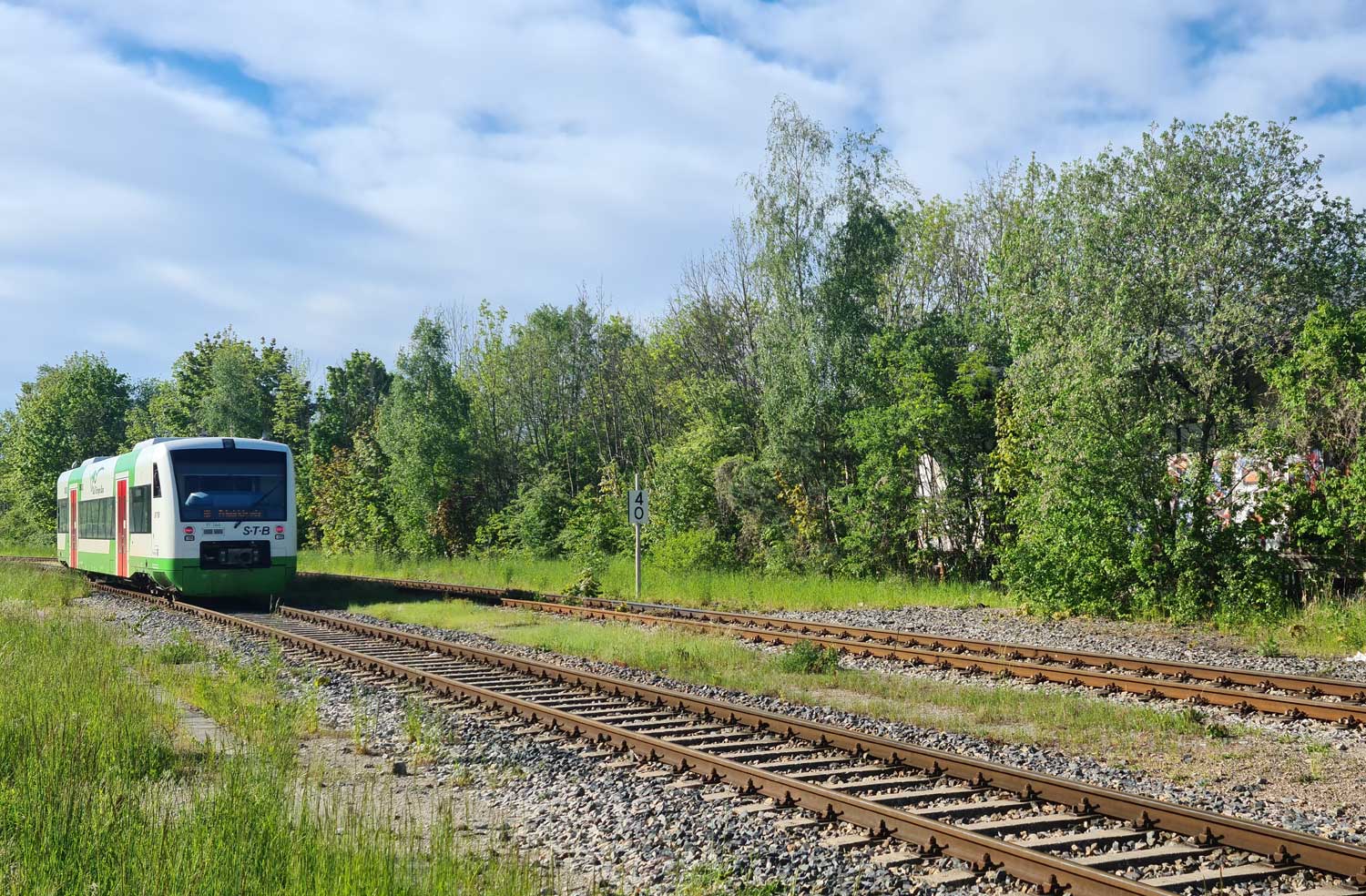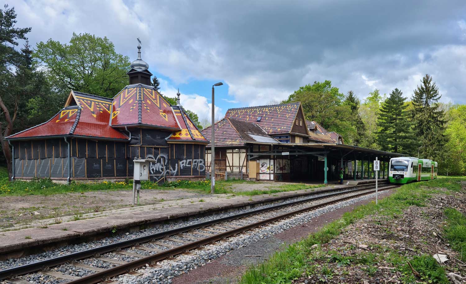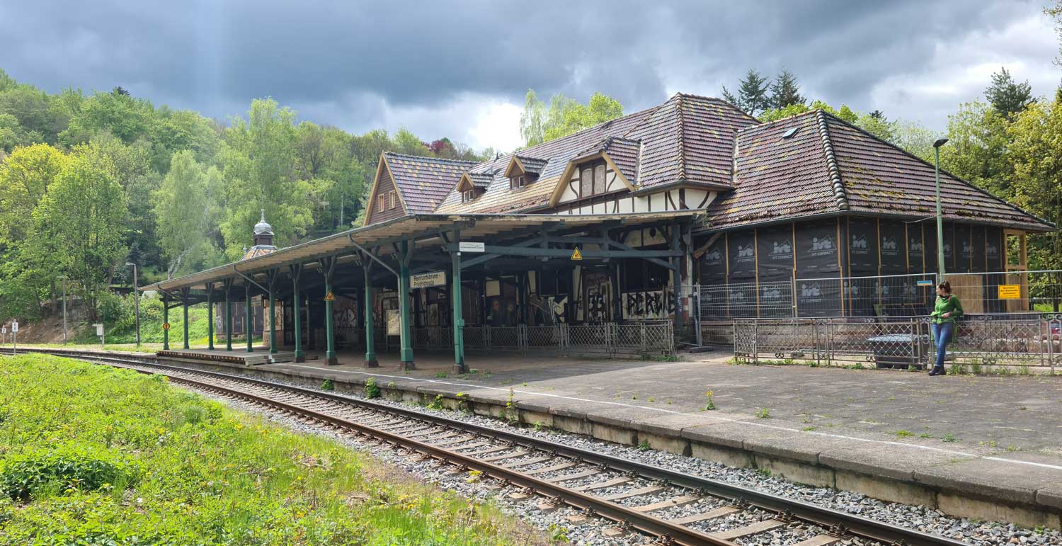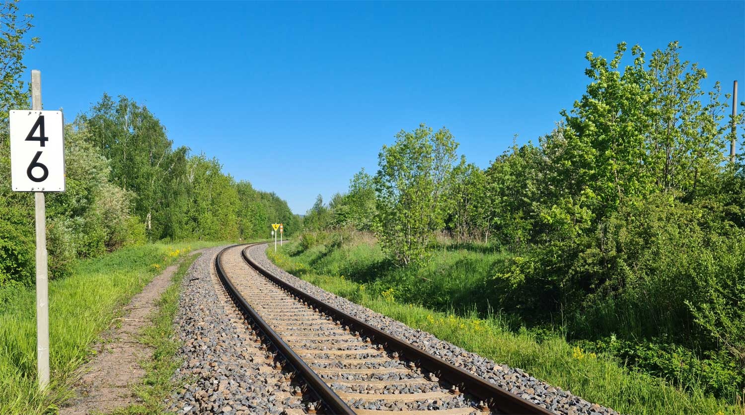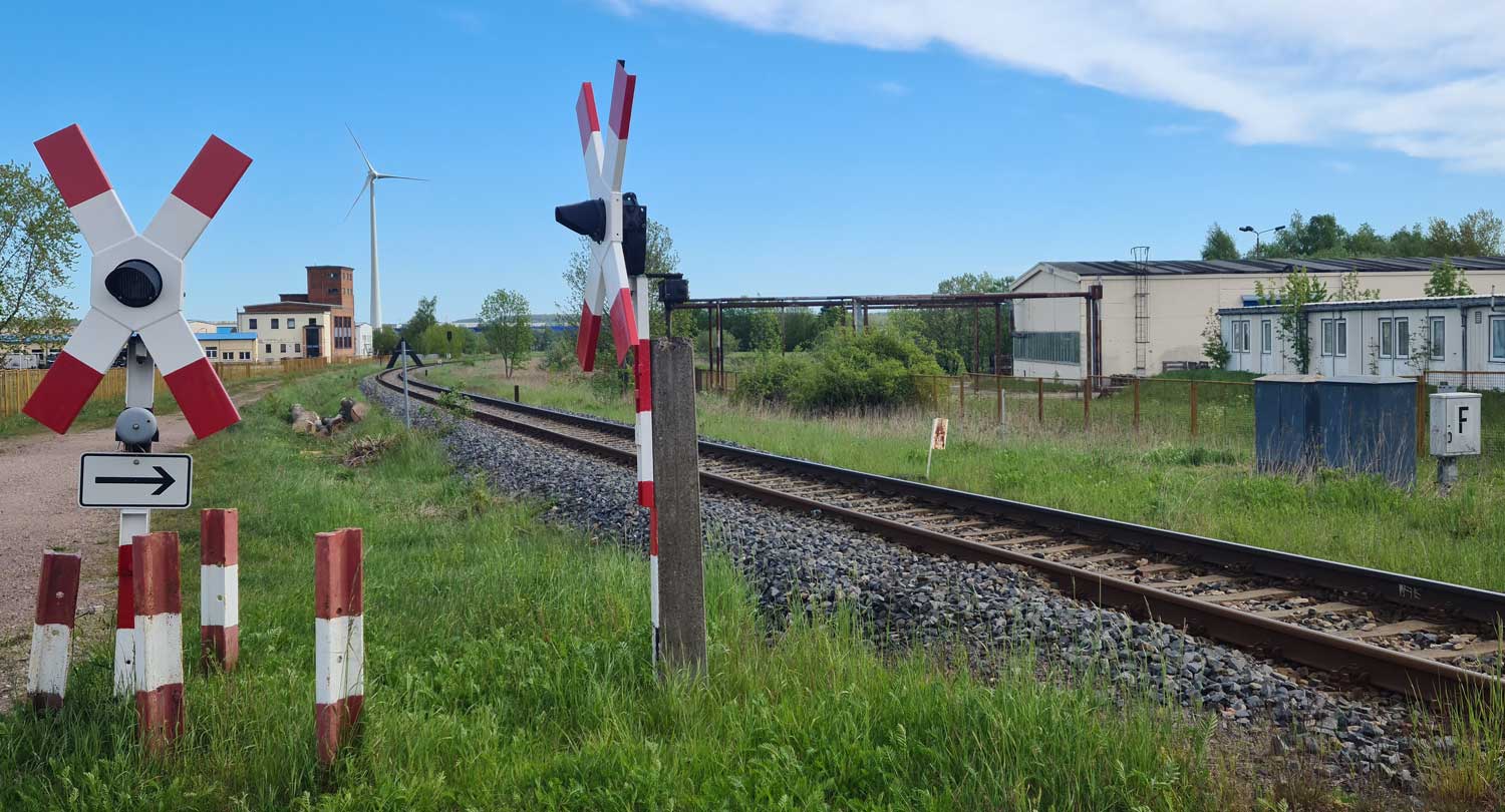 Links die Gleise der Thüringer Waldbahn