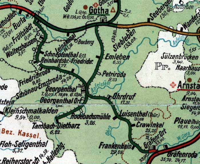 Auszug aus der Streckenkarte der Rbd Erfurt von1931