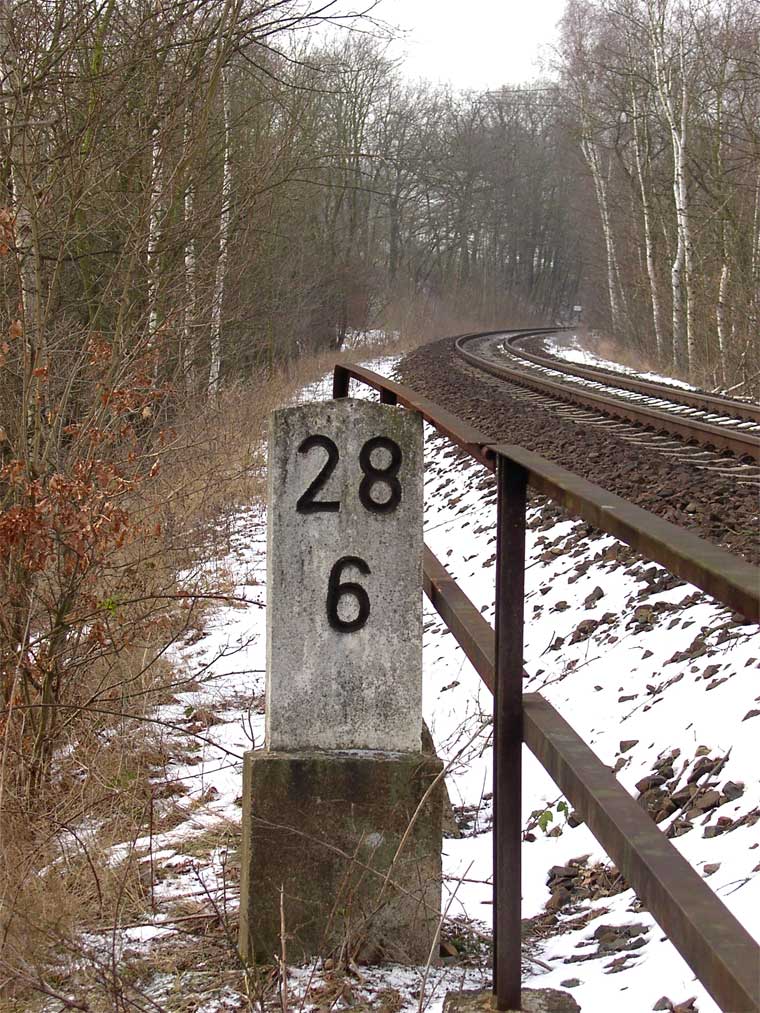 Rechts ein Stein der Strecke Gera Süd - Weischlitz