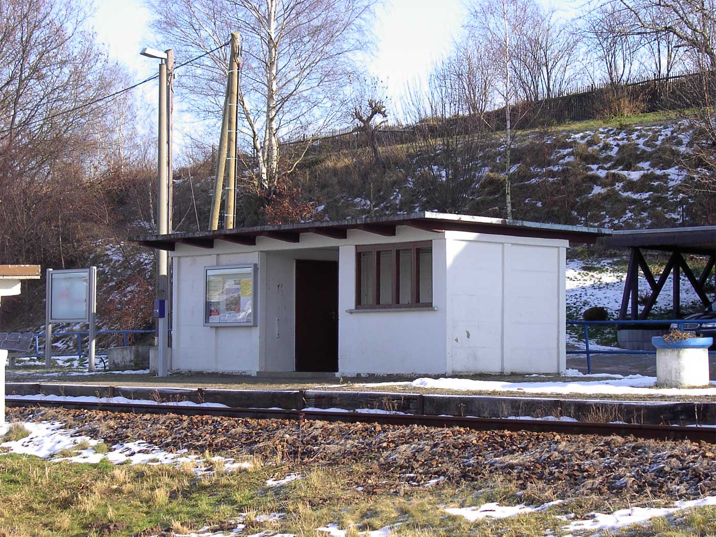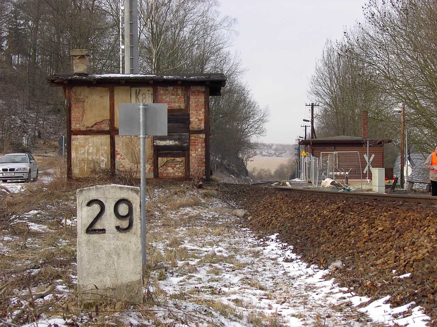 Raitzhain | 22,51 | km 25,44 der Strecke Streckenanfang Bf Kayna 0,0 - Kayna 0,8 - km 11,808 = km 19,550 - Großenstein (Kr Gera) 20,22 - Raitzhain 25,40 |