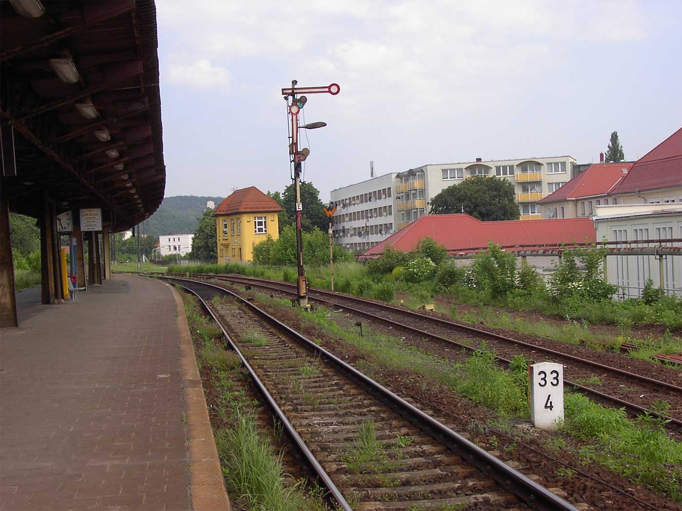 Gera Süd | 33,48 | km 74,60 der Strecke (Leipzig Hbf 0,0) - Leipzig-Leutzsch 6,69 - Zeitz 44,61 - Gera Hbf 72,81 - Saalfeld (Saale) 140,01 - Probstzella 164,99 - Grenze DDR/BRD 166,66 = 52,91 - (Hochstadt-Marktzeuln 0,0) |