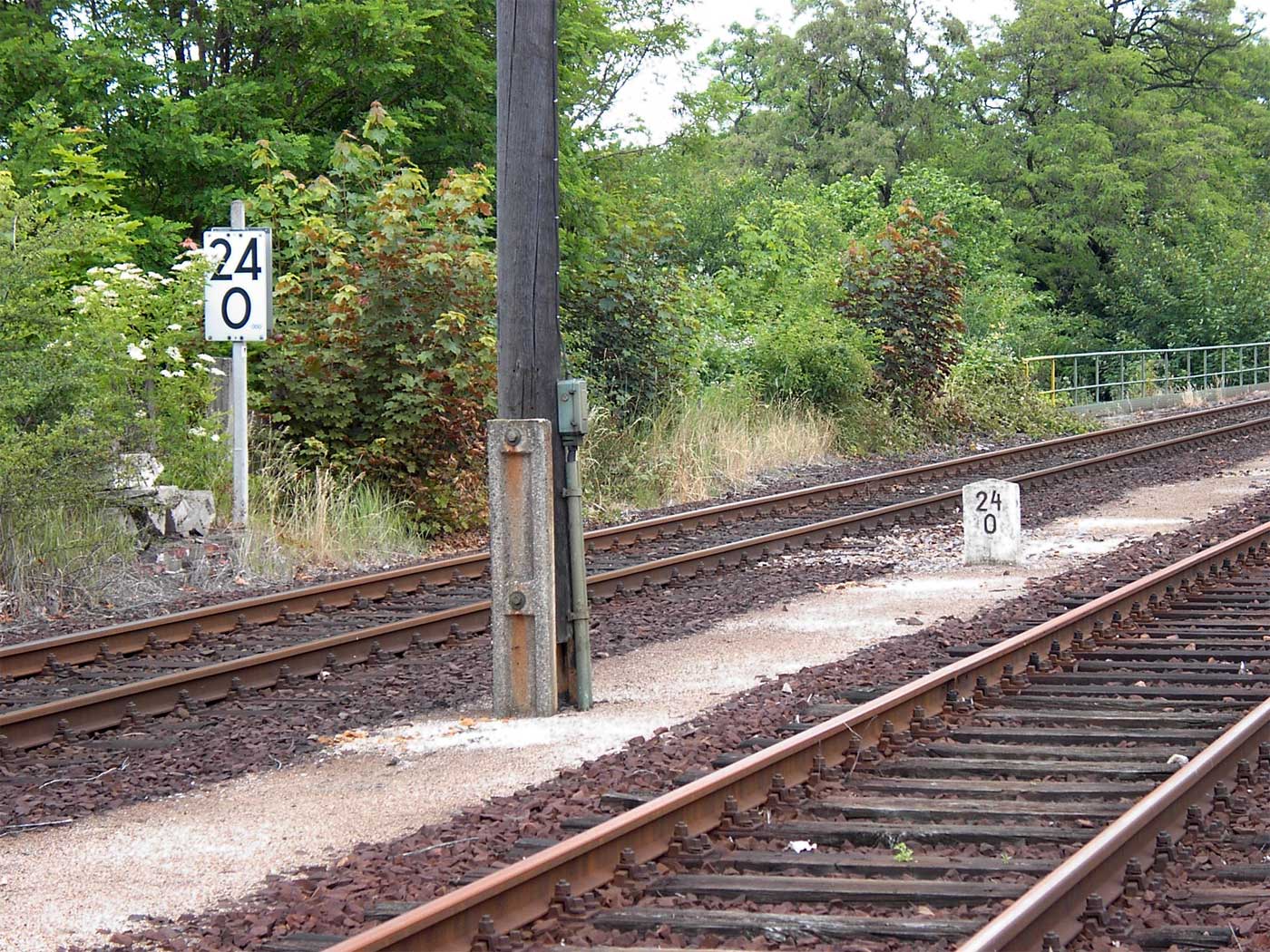 km -0,12 der Strecke Gera Süd -0,12 - Wünschendorf (Elster) 9,40 - Greiz 30,66 - Weischlitz 59,90 (GWz) | ||