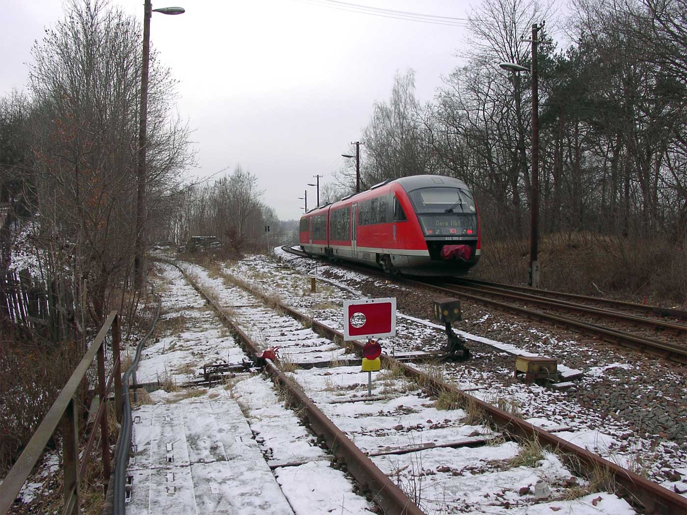 km 0,98 der Strecke (Gera Süd -0,12) - Abzw. Gera-Debschwitz 0,98 - Wünschendorf (Elster) 9,40 - Greiz 30,66 - Weischlitz 59,90 (GWz) | ||