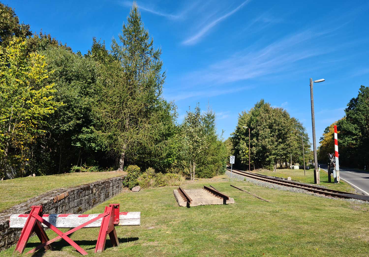 In Höhe km 25,0 befindet sich neben den Gleisen eine Gedenkstätte.