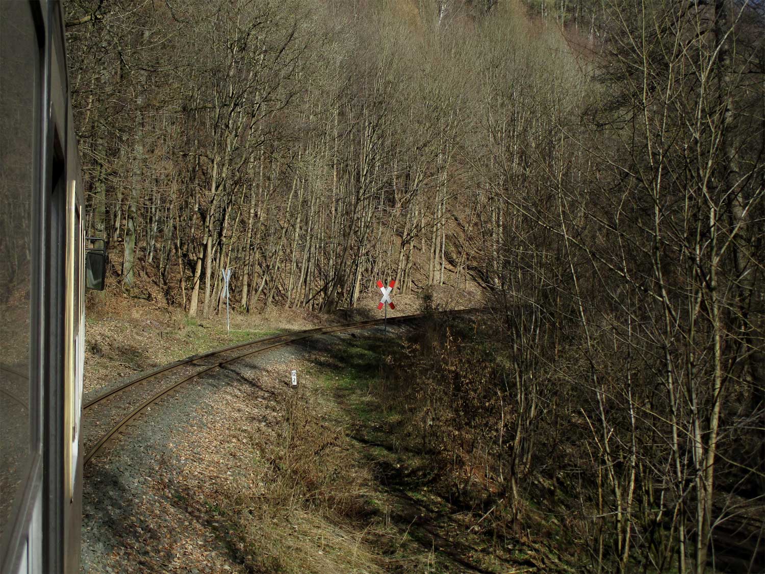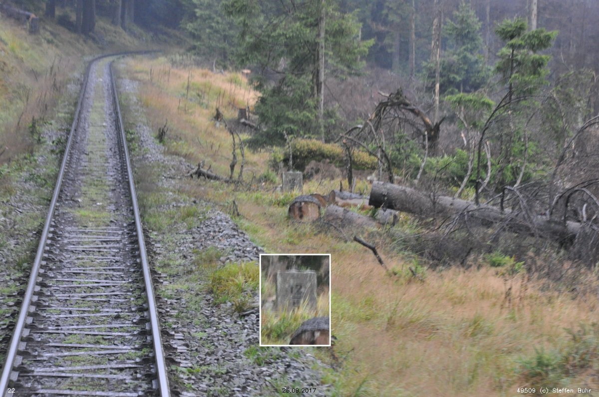 km 55,8 und km 55,9 zwischen Steinerne Renne und Wernigerode-Hasserode - Blick Richtung Wernigerode