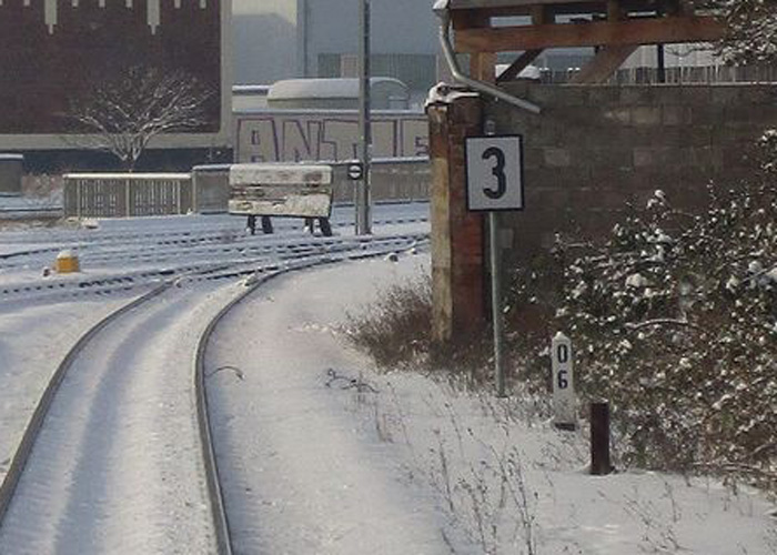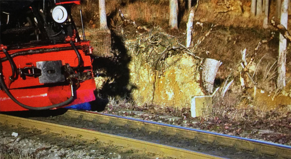 km 13,5 an der Ausweichstelle Goetheweg mit Rückdrückgleis