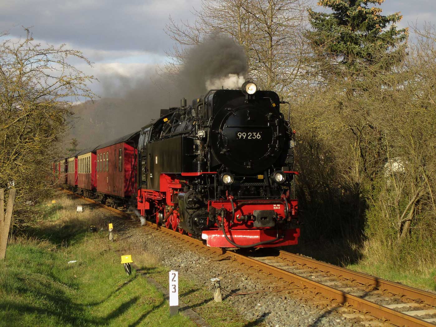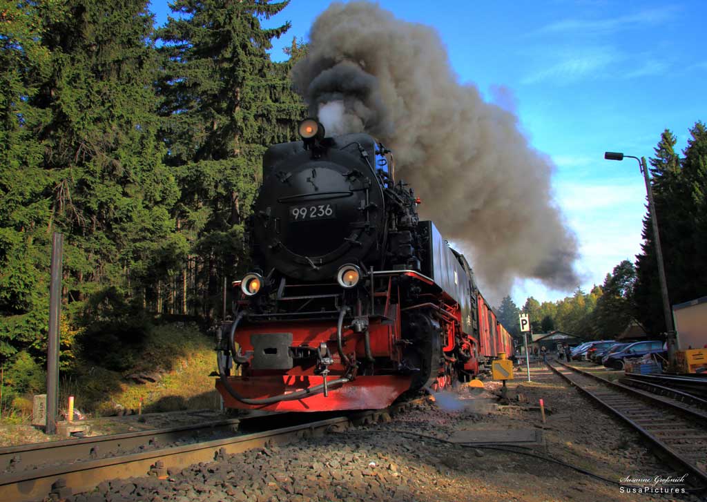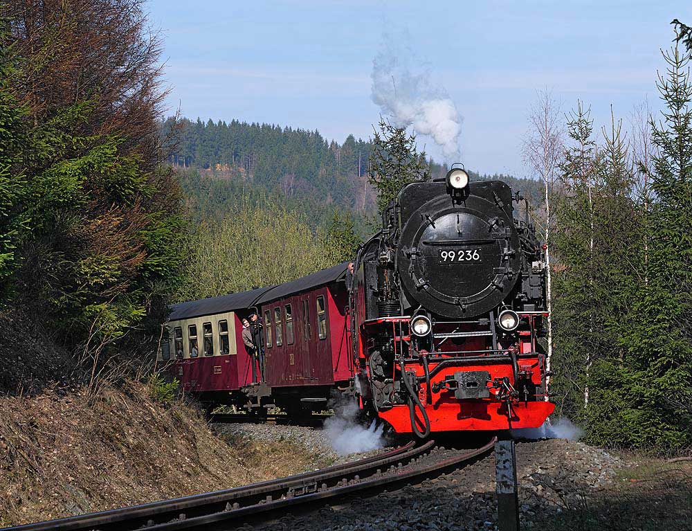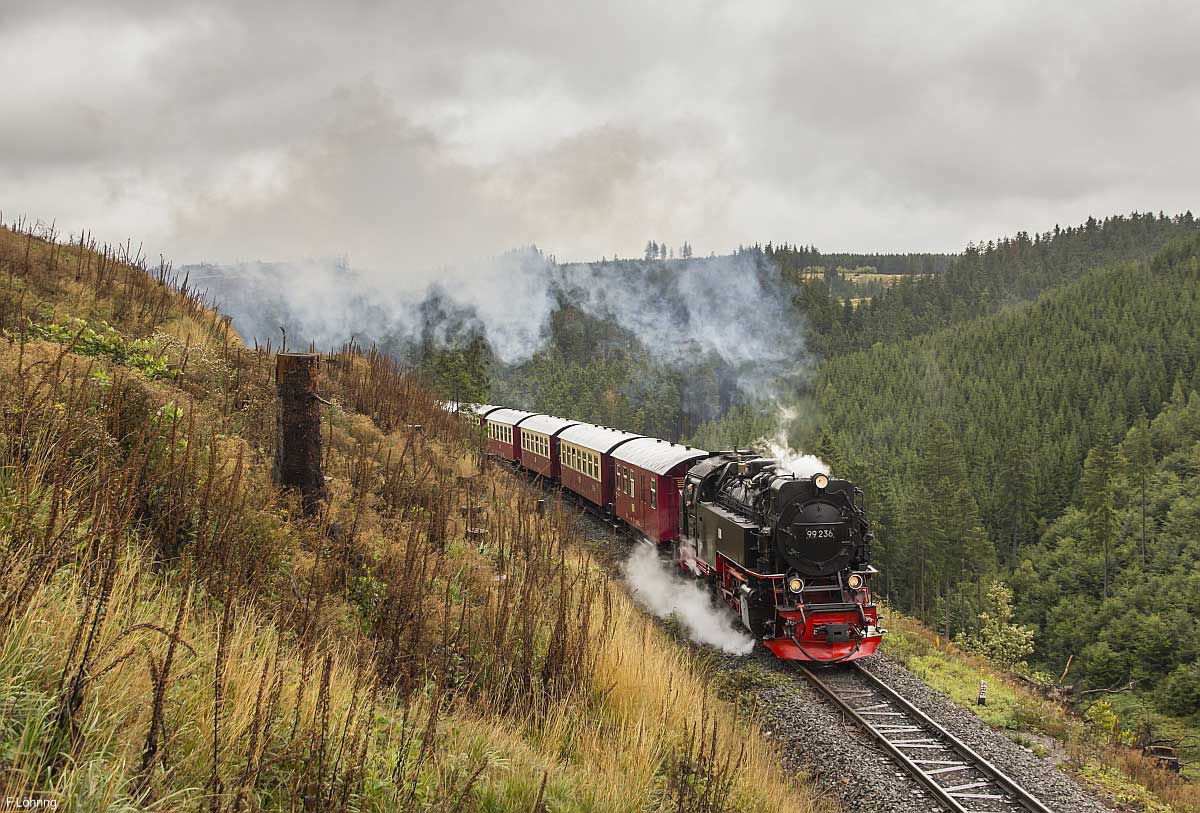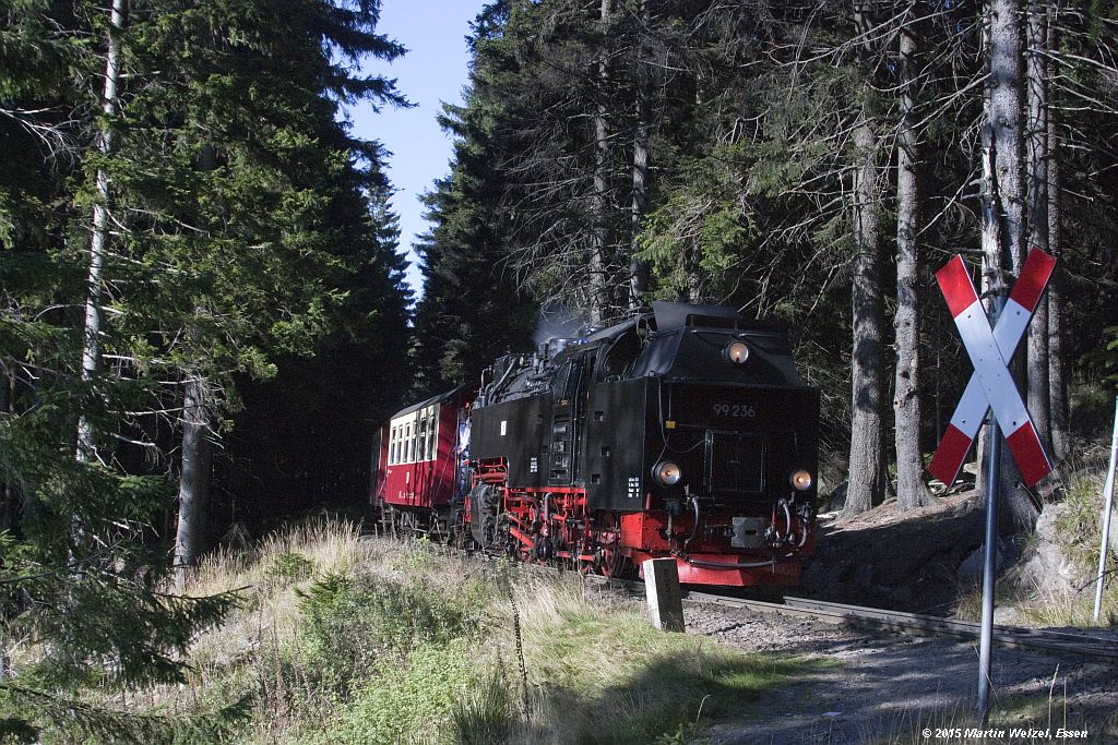 km 6,5 am BÜ Pfarrstieg bei Schierke - 99 236 mit P 8922 (Brocken . Drei Annen Hohne)