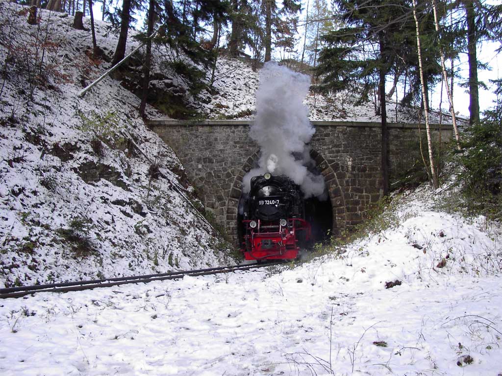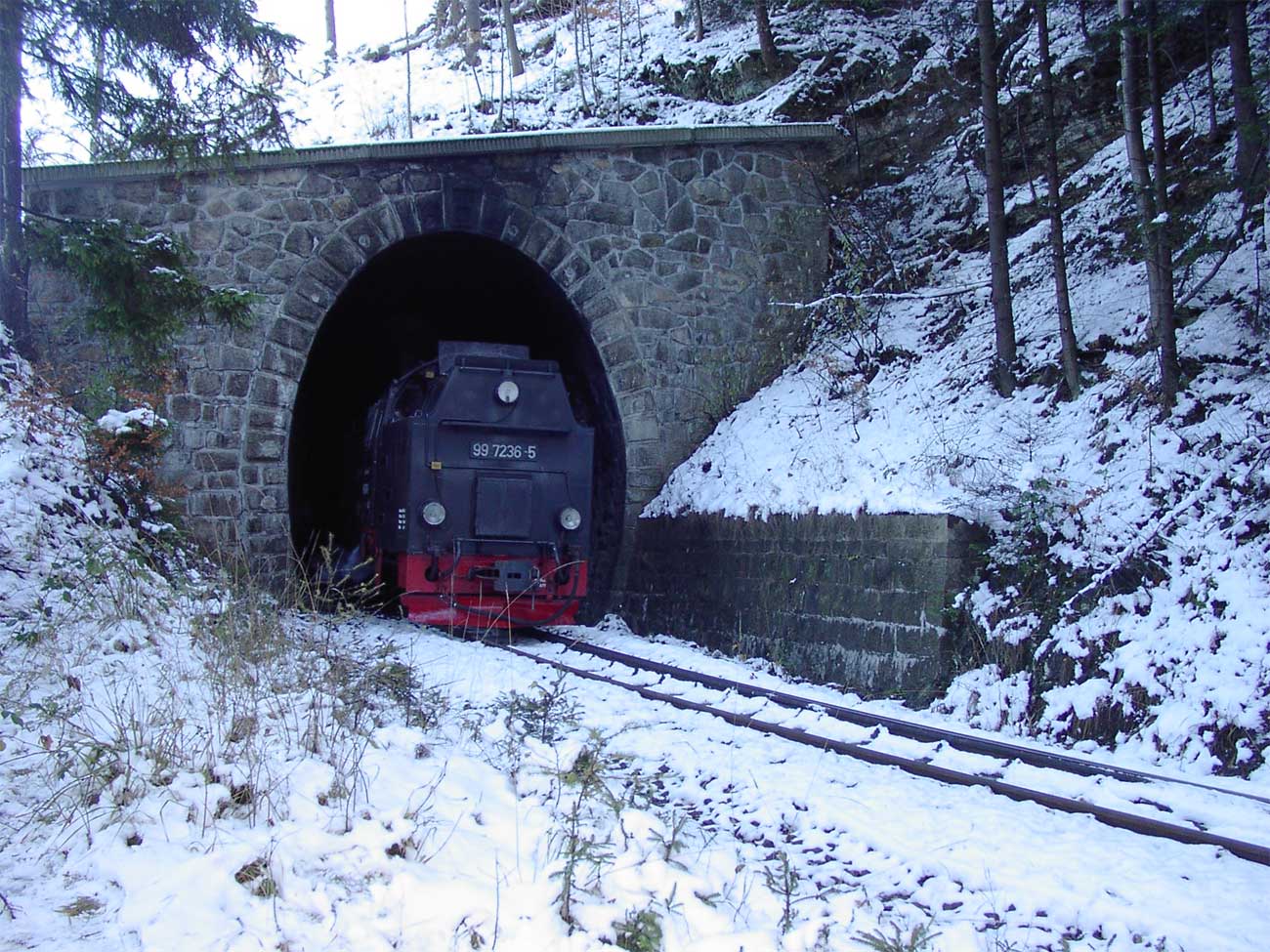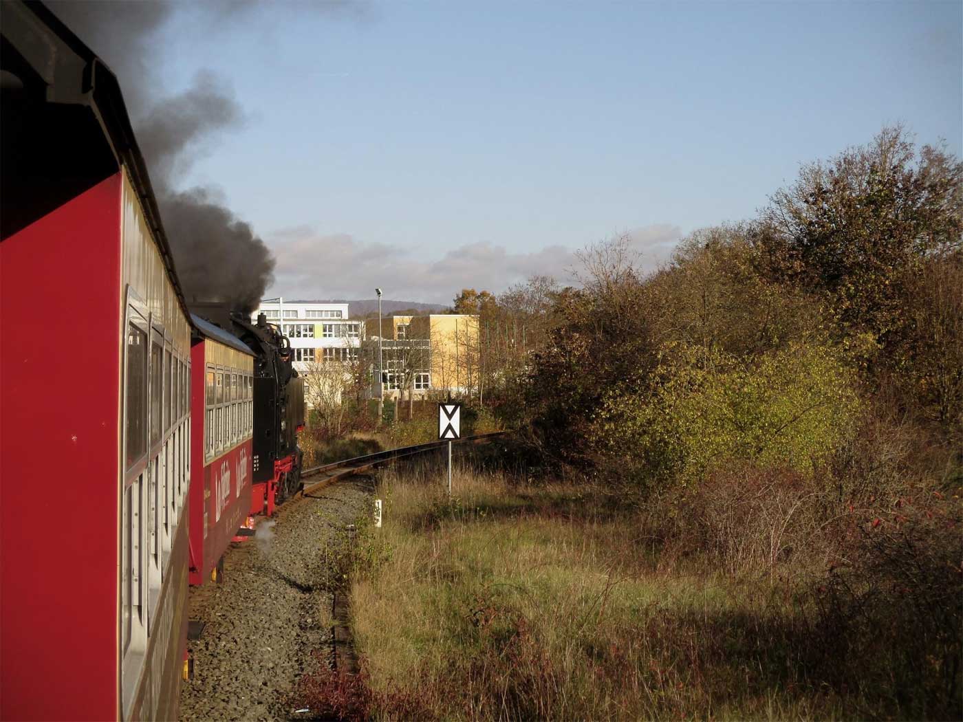 Zug hat den Tunnel verlassen und fährt in Ri Wernigerode Westerntor