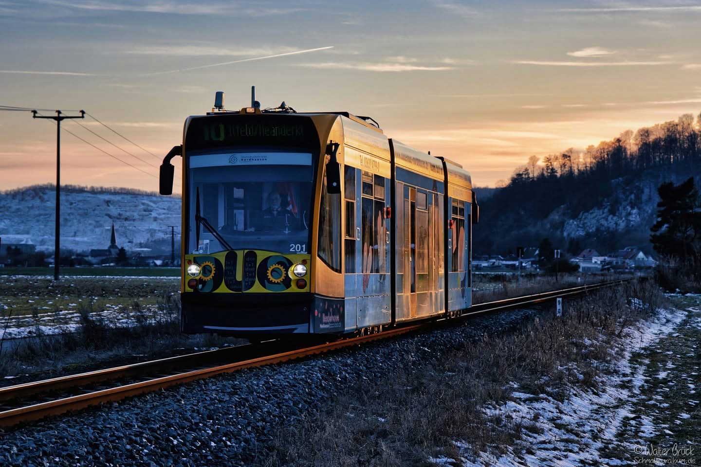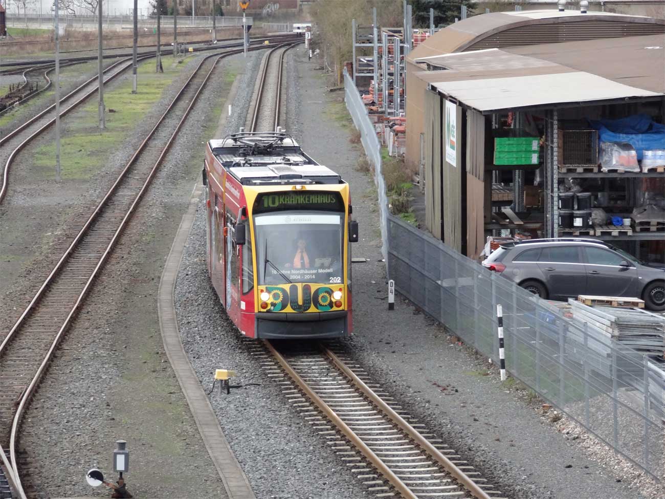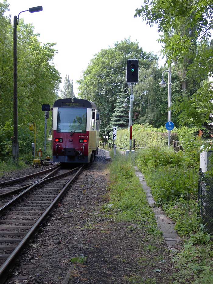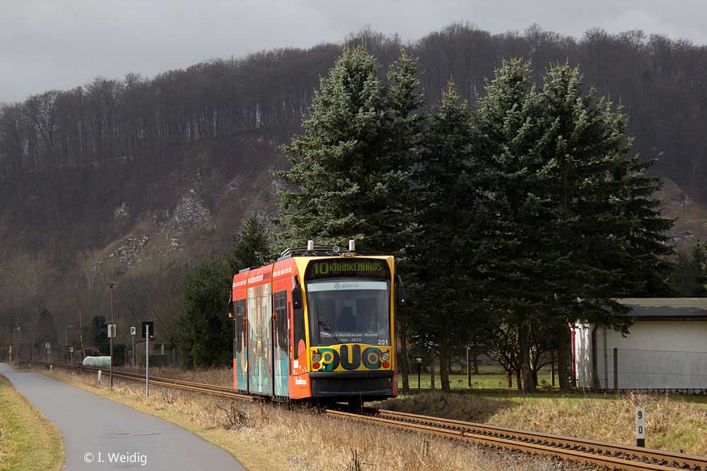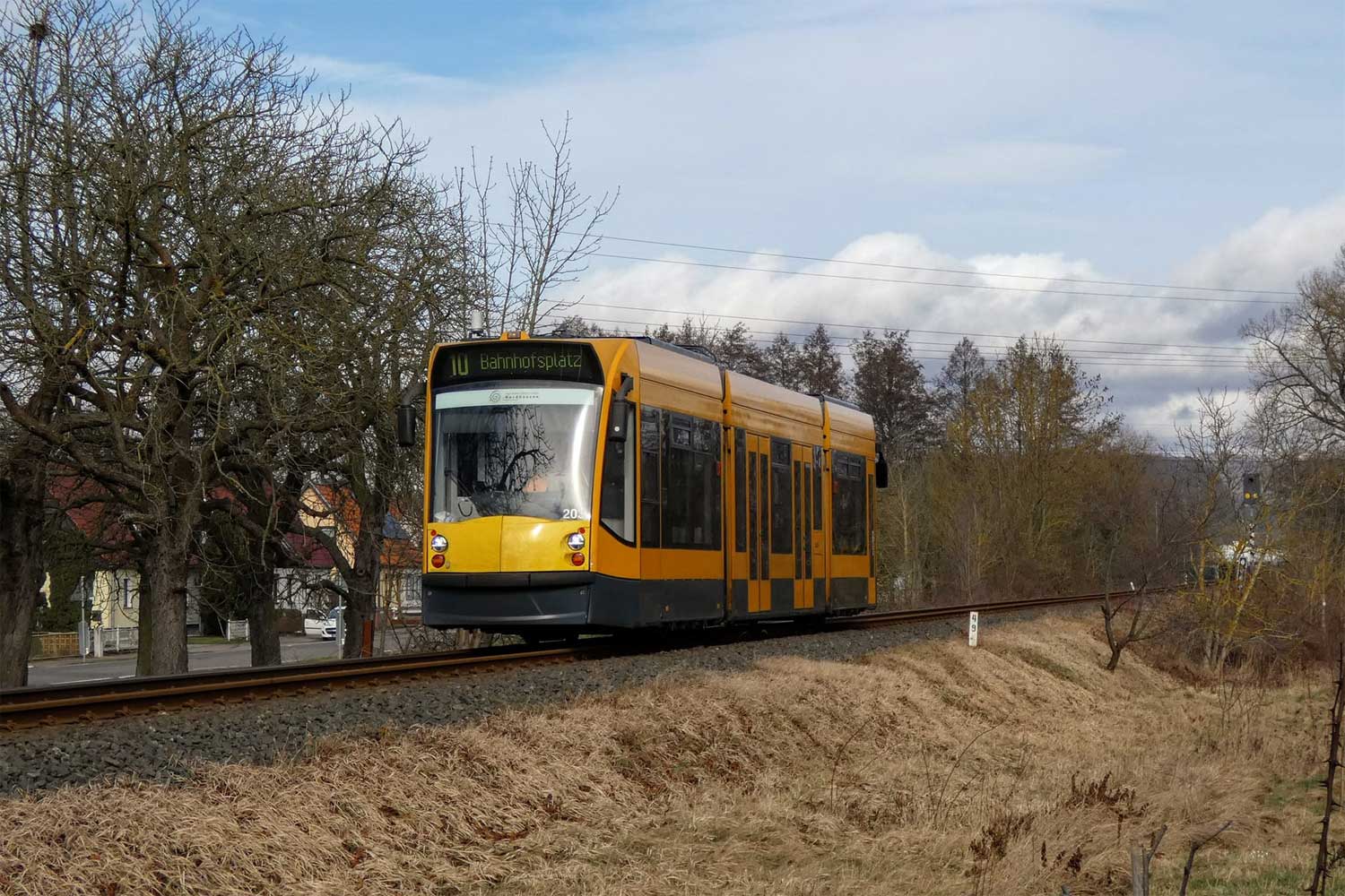 km 0,4 in Nordhausen Nord - einfahrende Straßenbahn