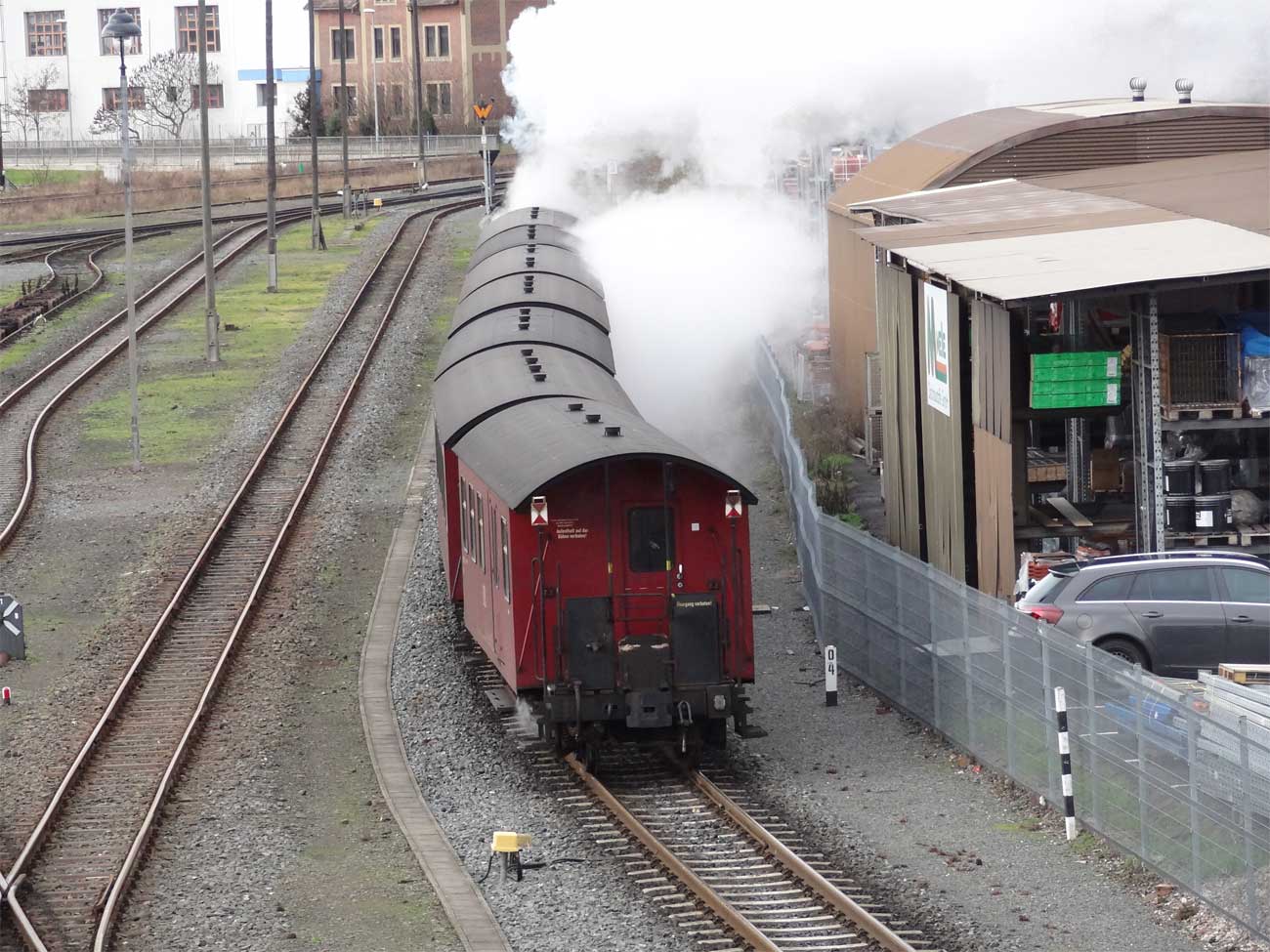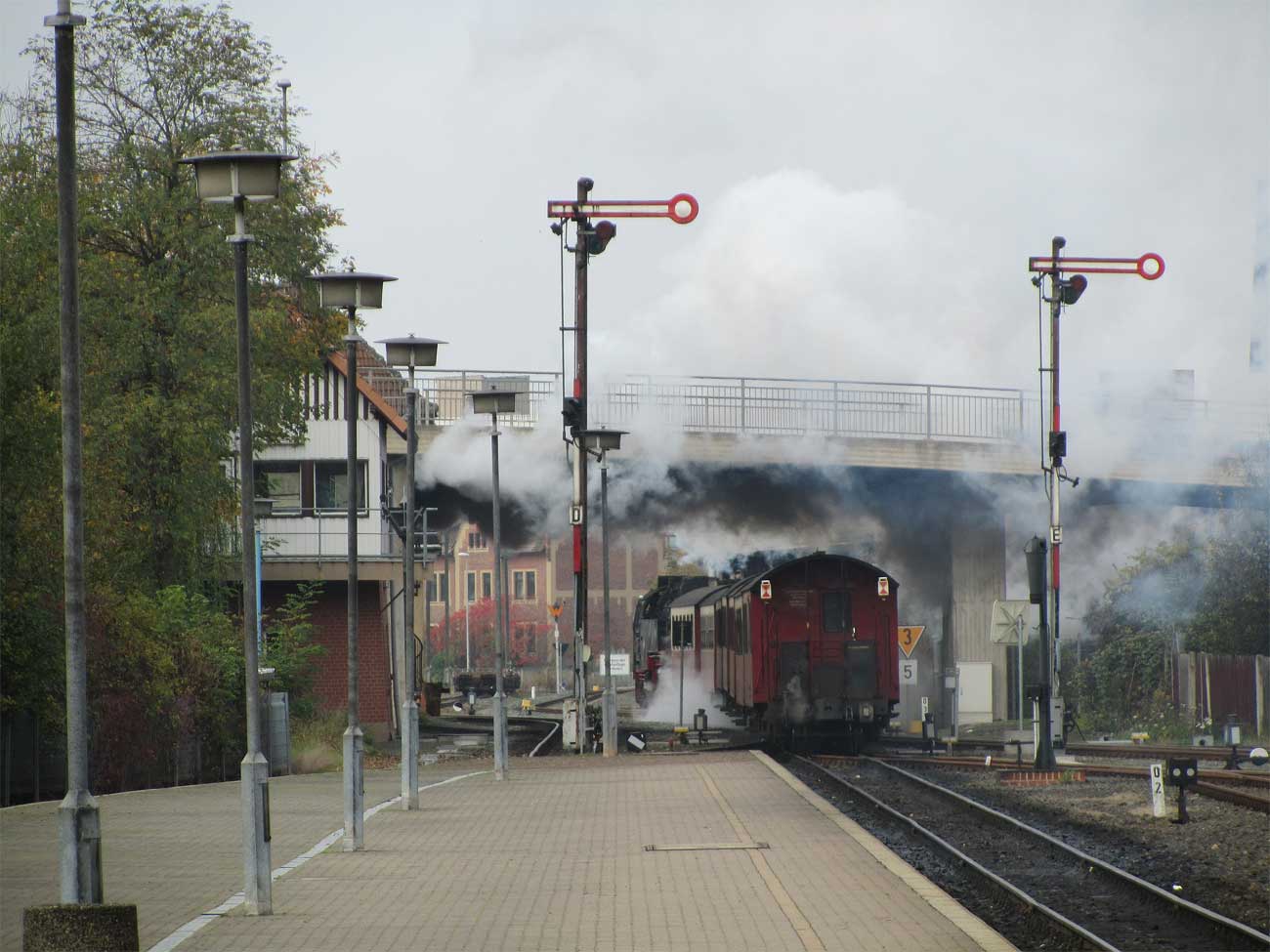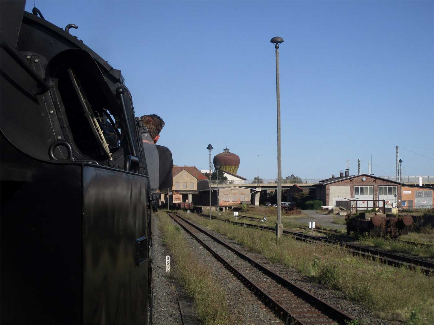 km 0,4 in Nordhausen Nord - ausfahrender Dampfzug
