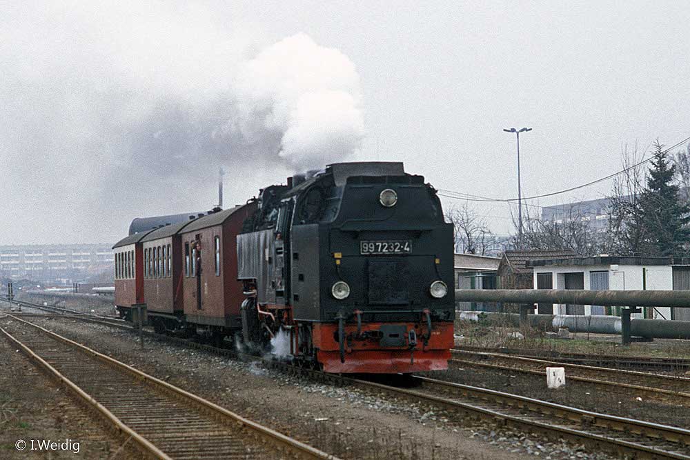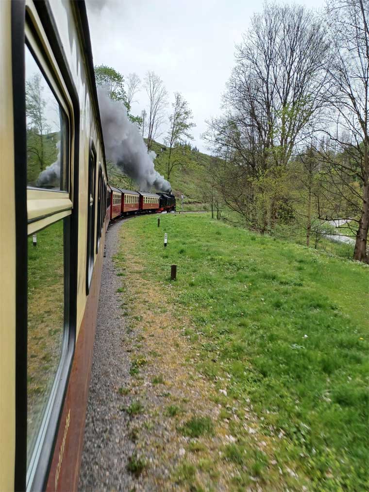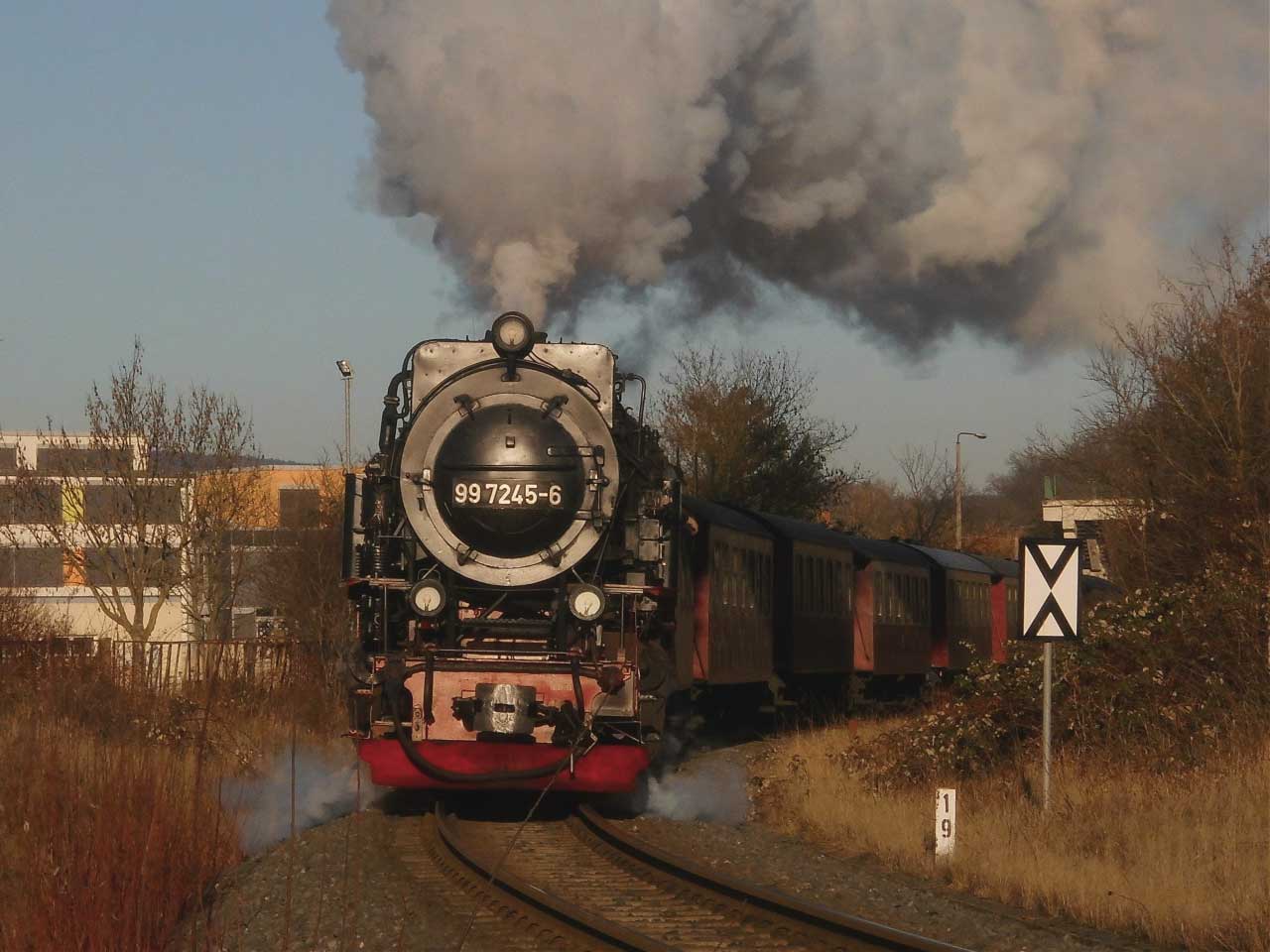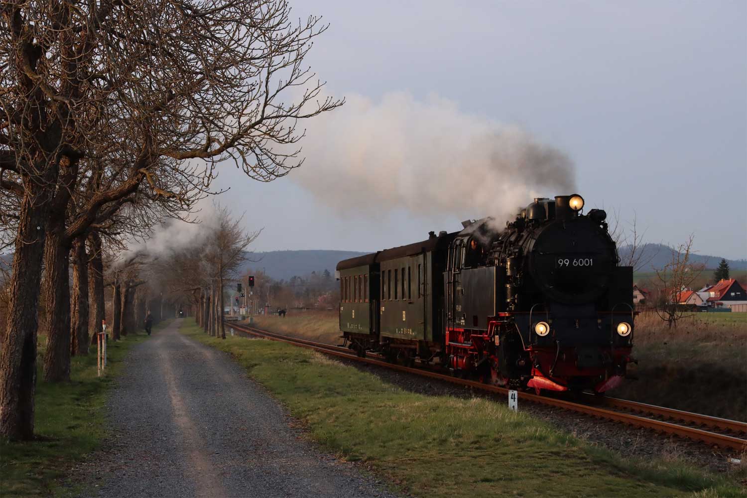 km 0,4 in Nordhausen Nord - ausfahrender Dampfzug