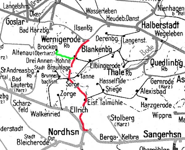 Wernigerode   60,48 km 9,18 der Strecke Heudeber-Danstedt 0,0 - Wernigerode 9,18 - Stapelburg 21,85 - Streckenunterbrechung - Grenze DDR/BRD 23,22 - Streckenunterbrechung - (Eckertal 23,61) - Bad Harzburg 32,19 - Oker 39,07
