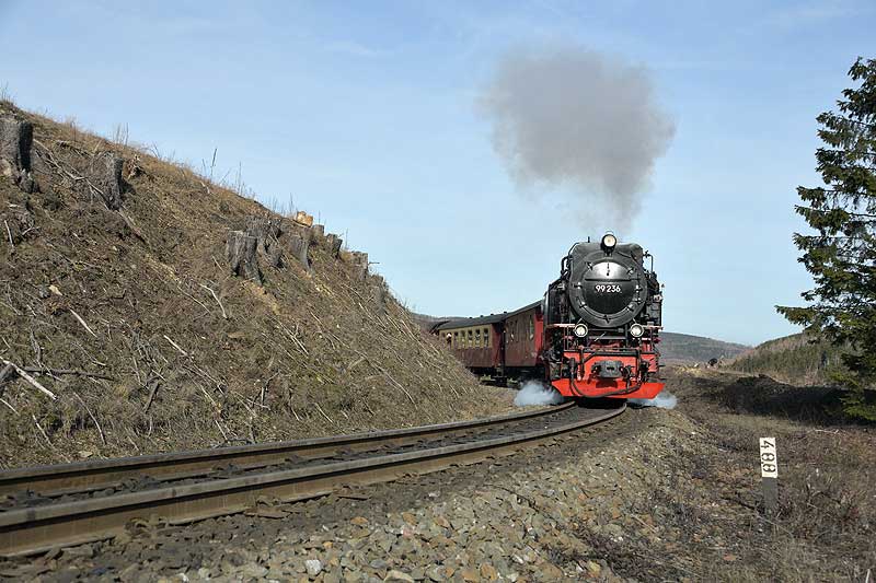 km 1,x (rechts vor der Lok) zwischen Drei Annen Hohne und Schierke - 99 234
