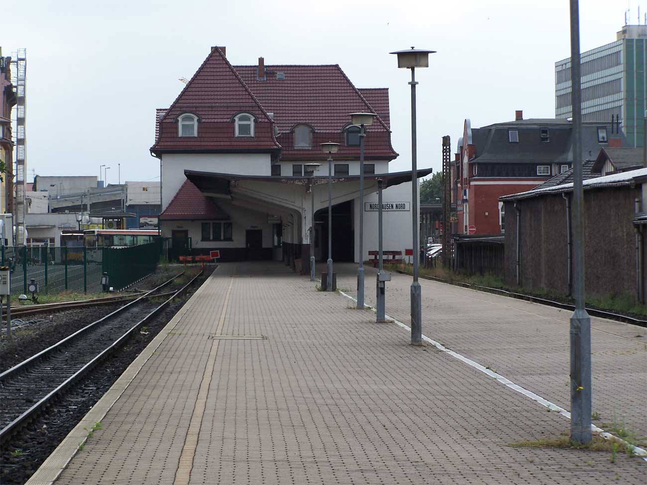 Nordhausen Nord 0,0 Der Bf Nordhausen Nord liegt in unmittelbarer Nähe des Bf Nordhausen