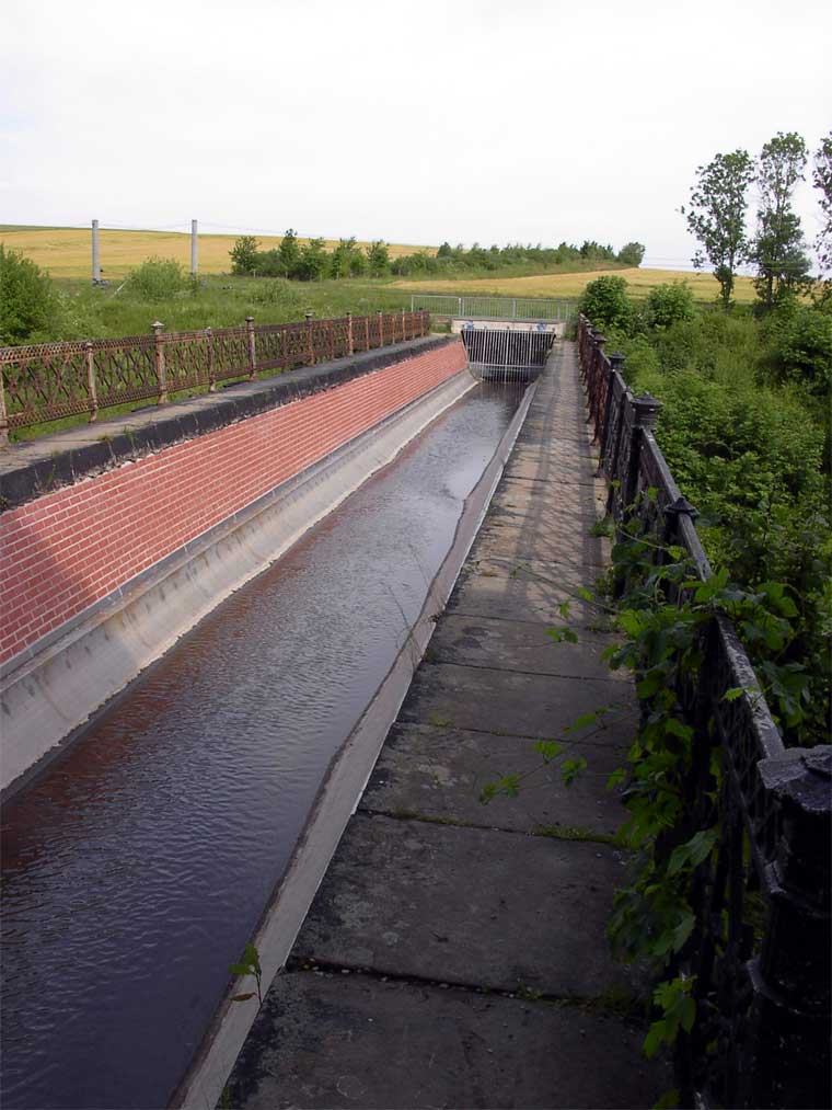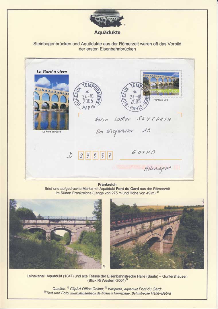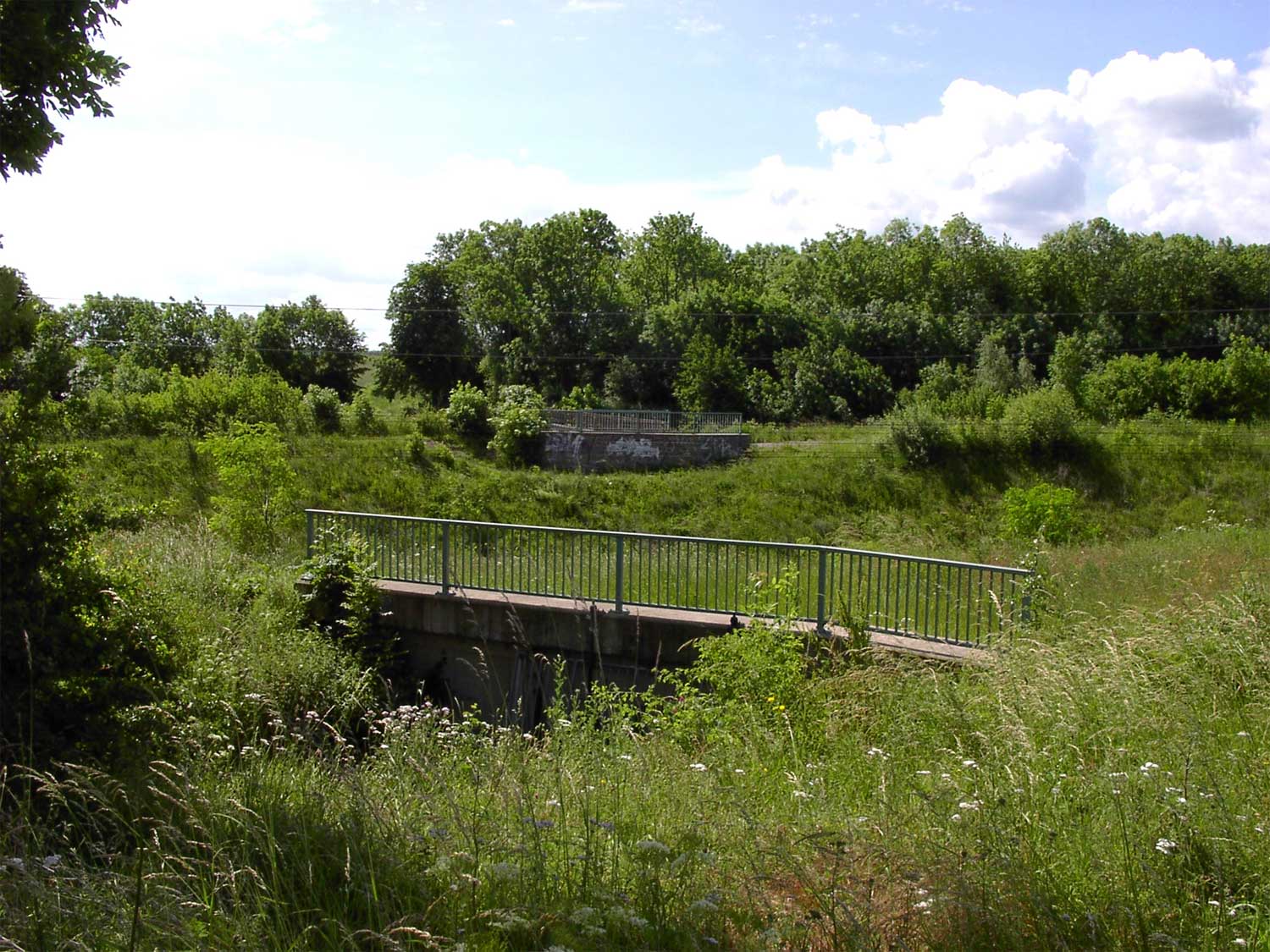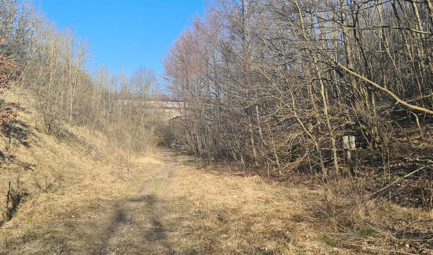 links die alte Trasse mit dem Aquädukt im Hintergrund.