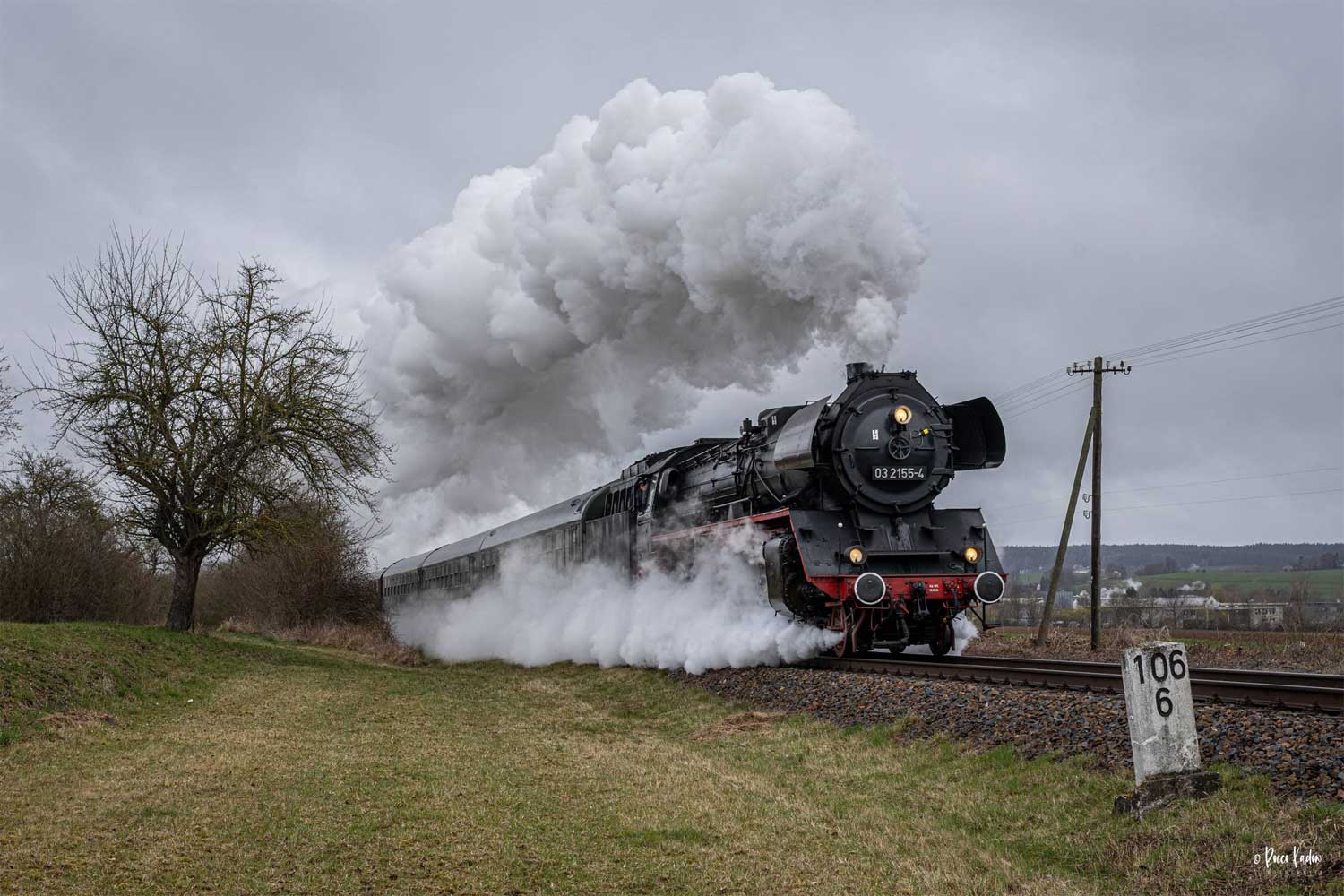 01 1511 führte den P 3023 am km 122,3 in Pößneck ob Bf