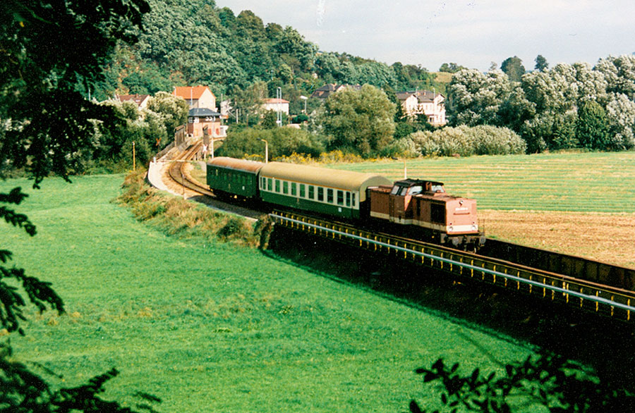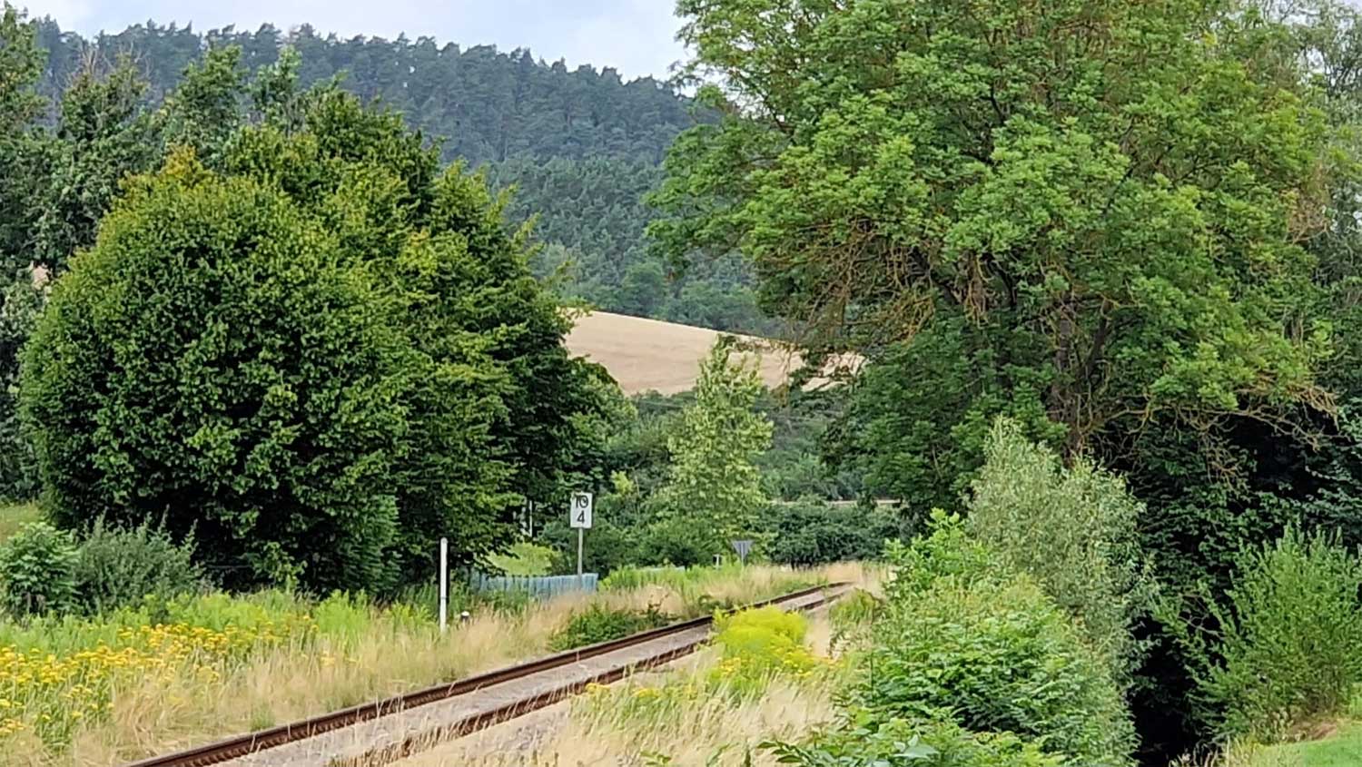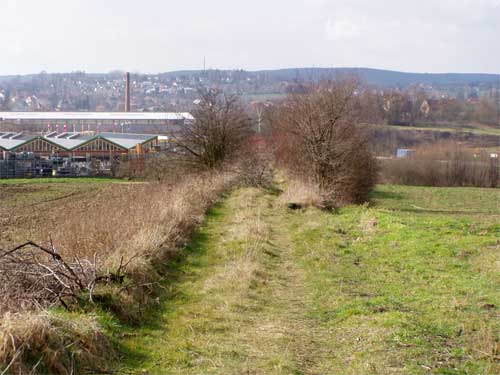 Blick vom alten Bahndamm zur Strecke Leipzig/Leitzsch - Probstzella