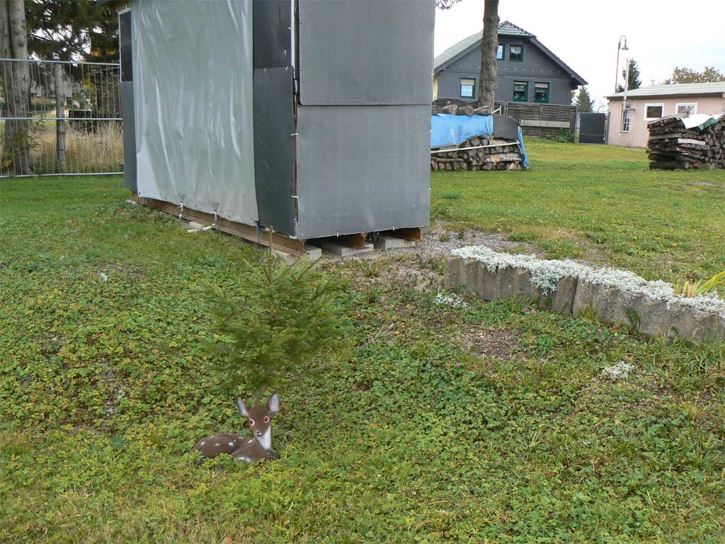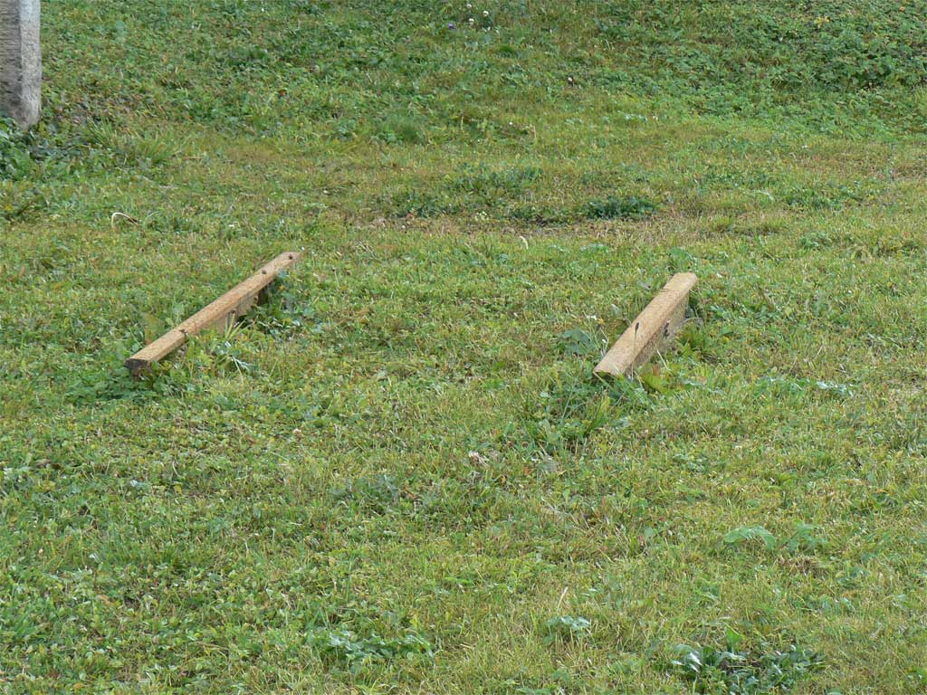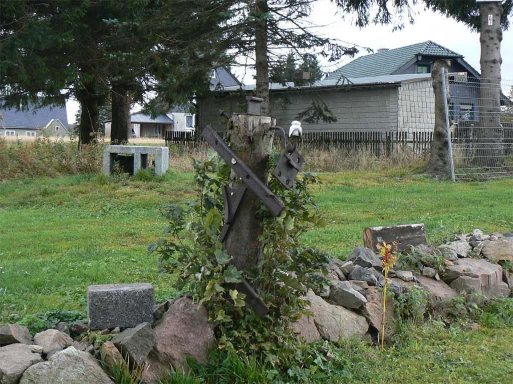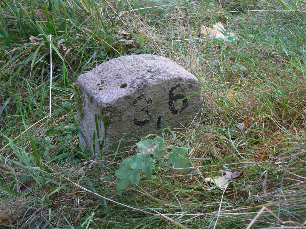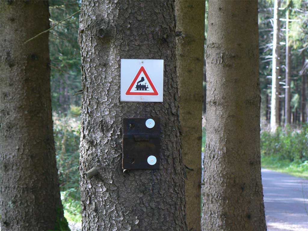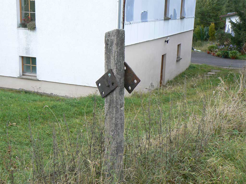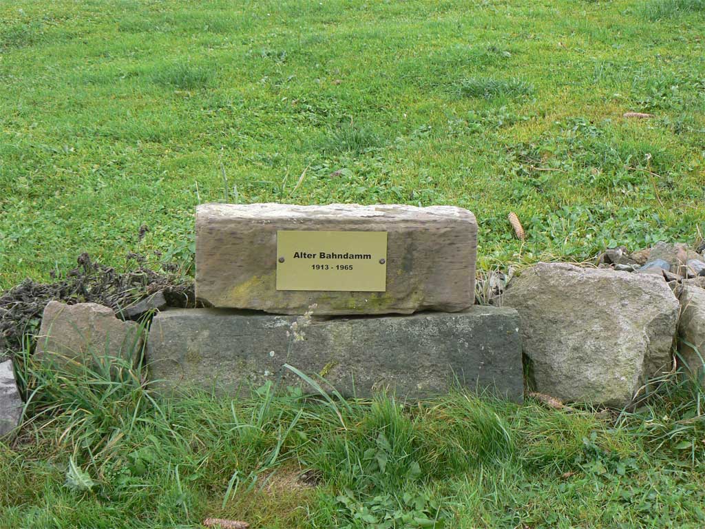 Kennzeichnung des alten Bahndammes durch altes Oberbaumaterial