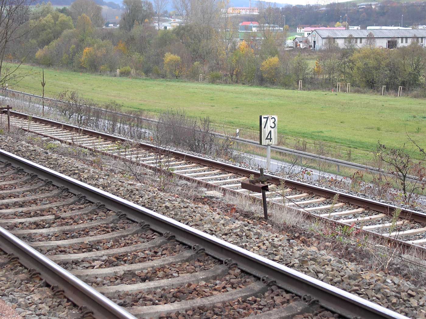 km 73,6 (links) zwischen Ritschenhausen und Meiningen in Höhe der Bk/Hp Untermaßfeld - Blick Richtung Meiningen