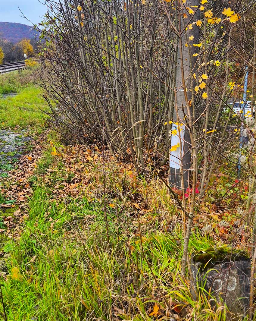 km 50,8 (Tafel) und km 50,9 (Stein) zwischen Oberstreu und Mellrichstadt Bf