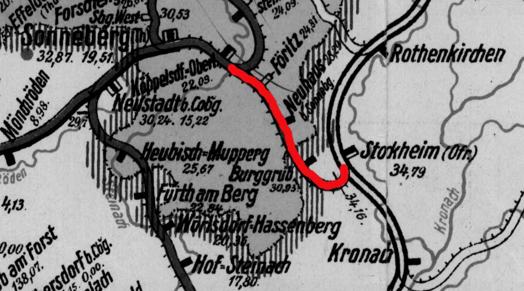 [Coburg 0,0 - Sonneberg (Thür) 19,51] - Köppelsdorf-Oberlind 22,09 - Stockheim (Oberfr) 34,79