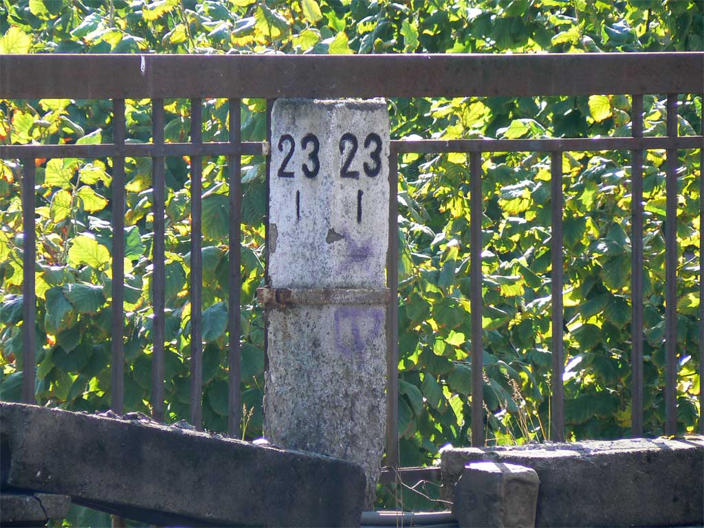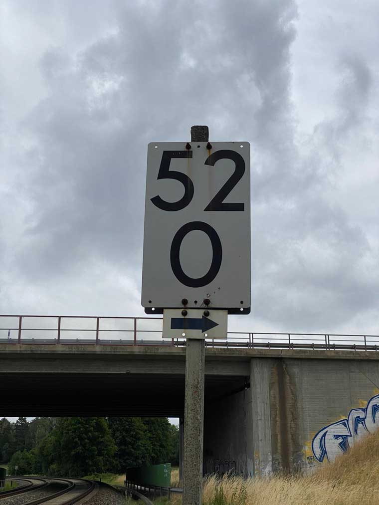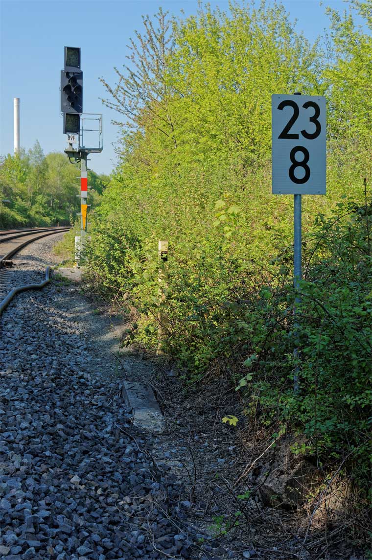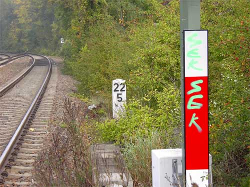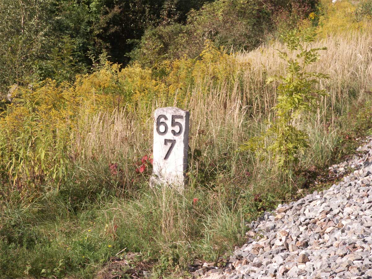 km 86,5 (Stein rechts) und km 86,6 (Tafel) gehören zur Strecke