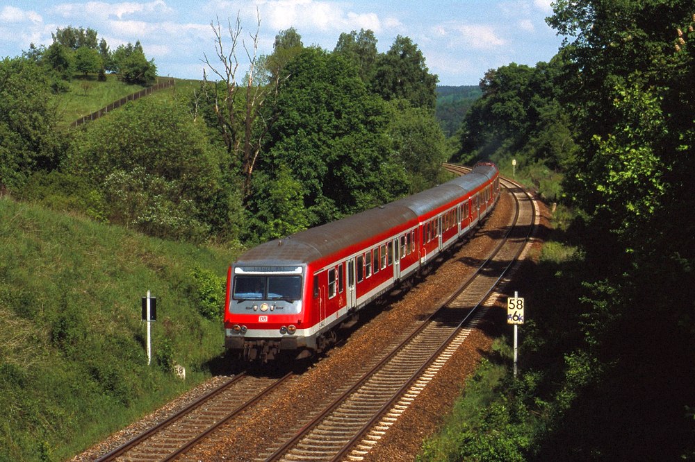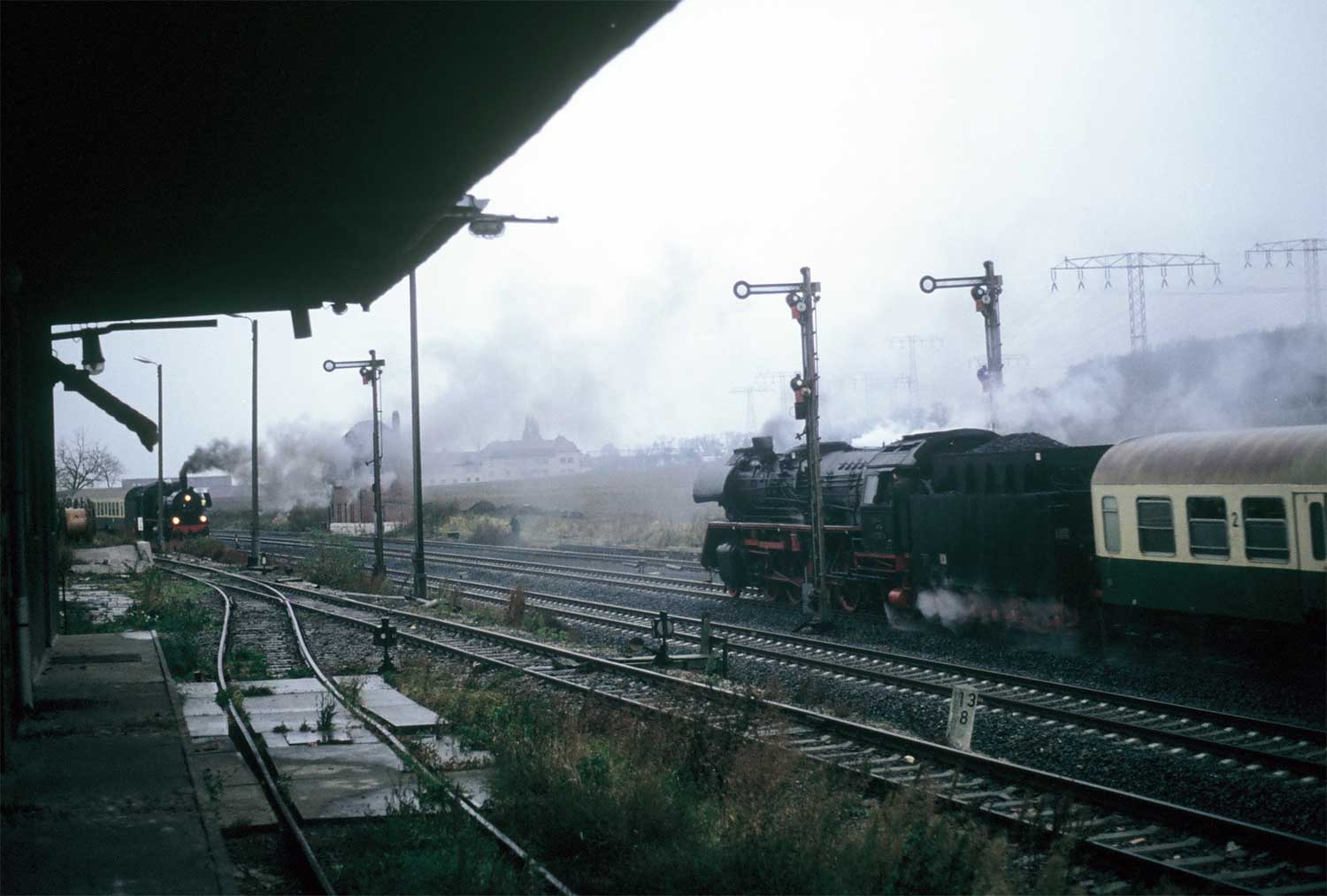 Leipzig Hbf 0,0) - Leipzig-Leutzsch 6,69 - Zeitz 44,61 - Gera Hbf 72,81 - Saalfeld (Saale) 140,01 - Probstzella 164,99 - Landesgrenze Thüringen/Bayern 166,66 = 52,91 - (Hochstadt-Marktzeuln 0,0)