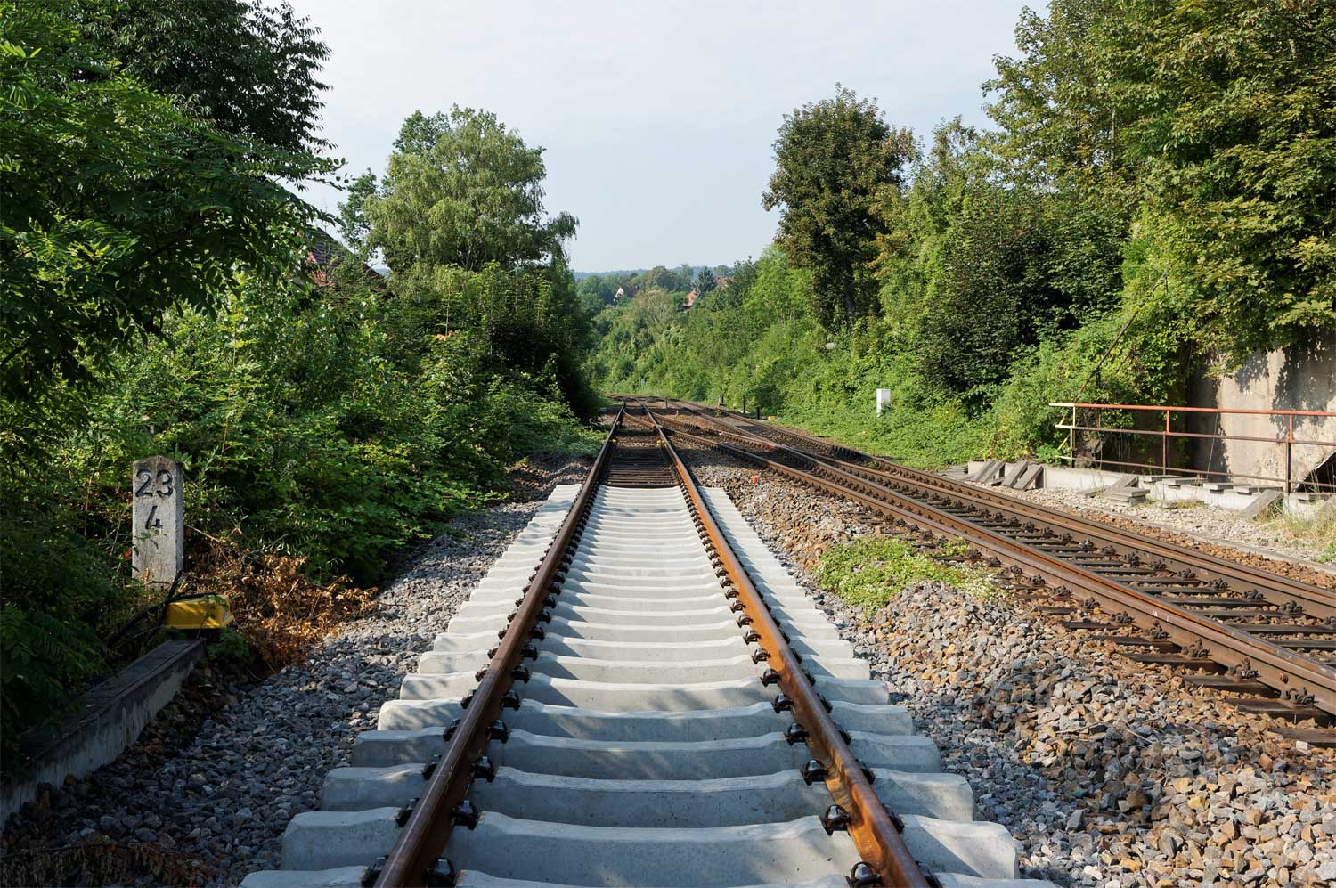 km 0,8 (Gegenrichtungsgleis) in Weimar - Blick Richtung Streckenanfang