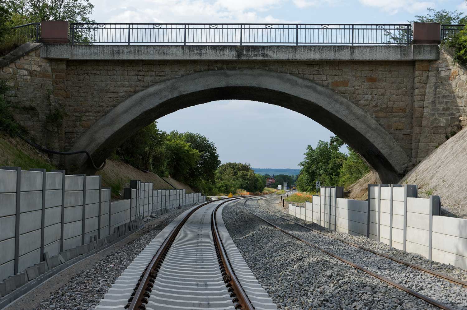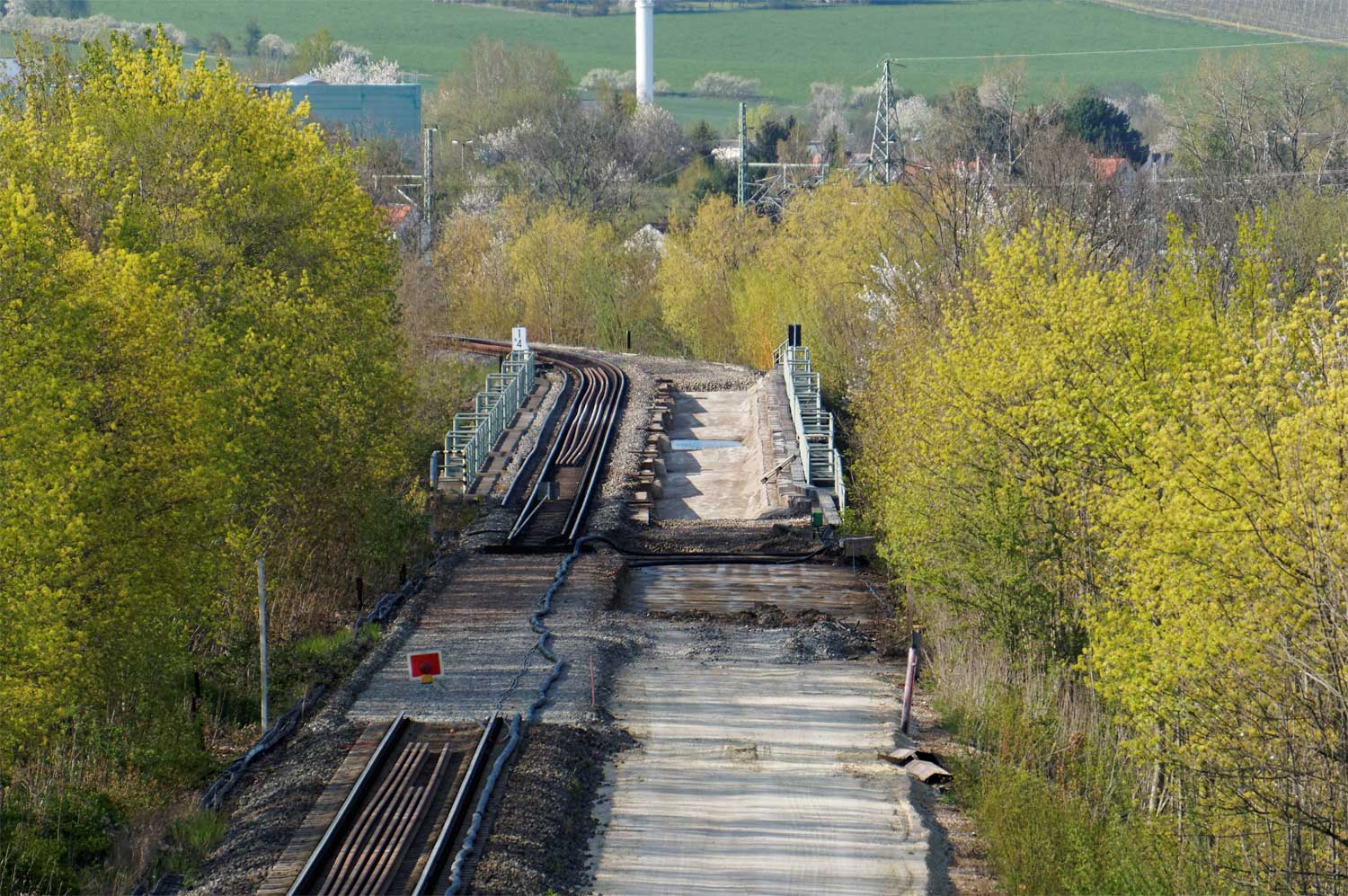 Stabbogenbrücke überspannt die Strecke Halle (Saale) Hbf - Guntershausen mit km 86,2