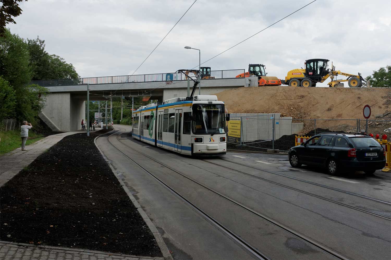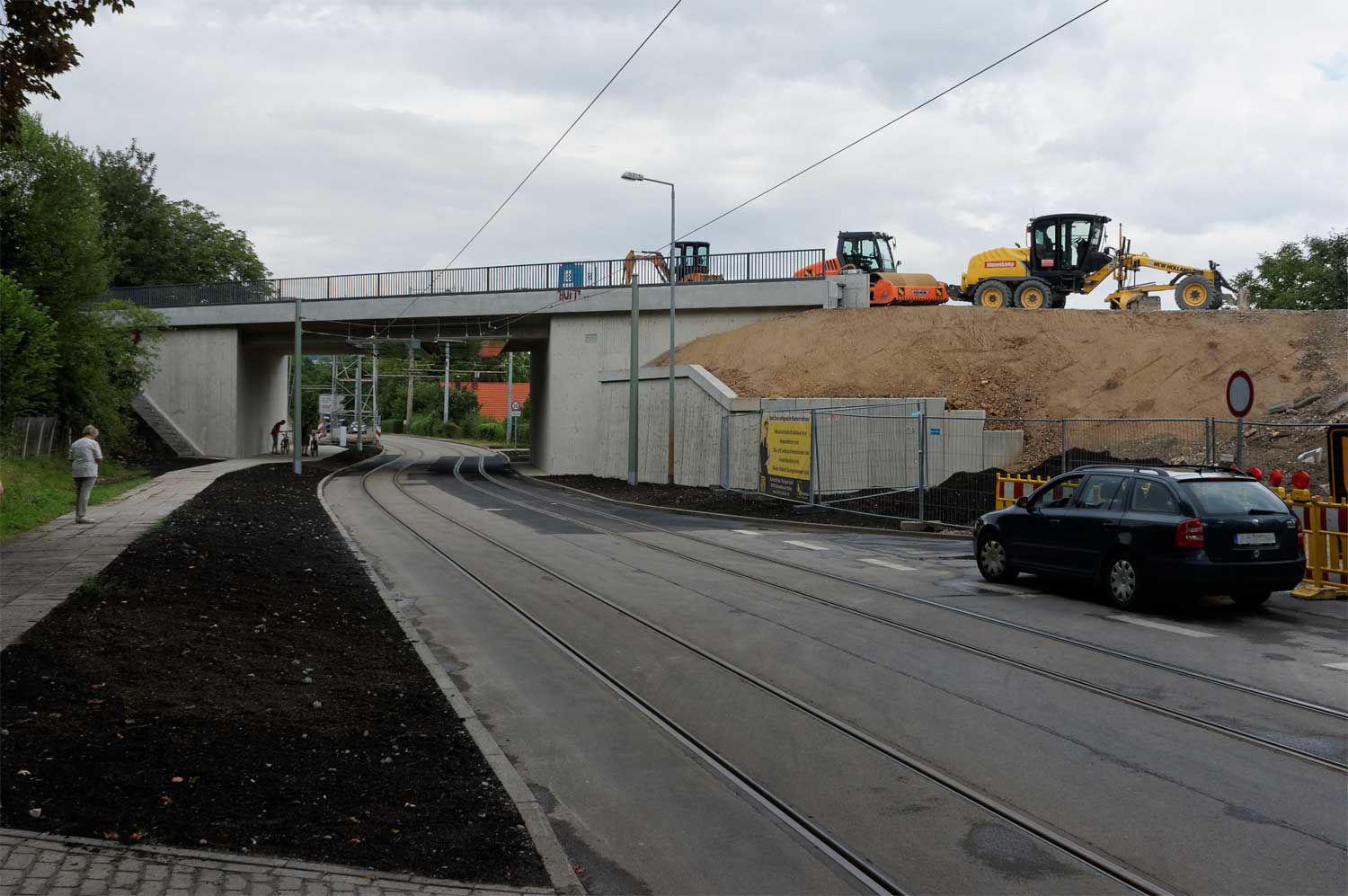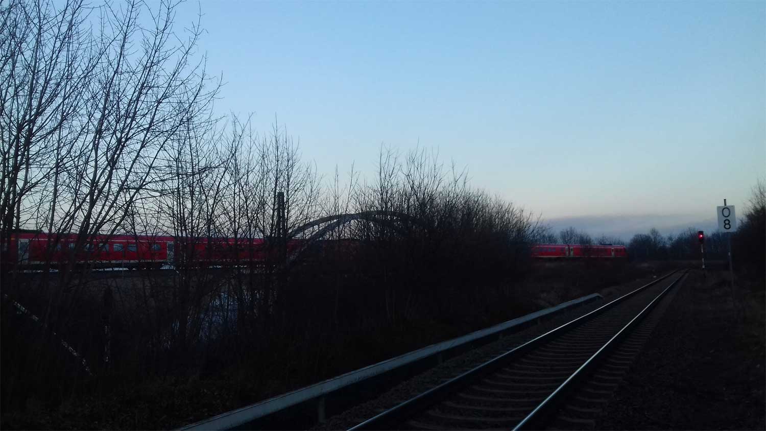 km 0,8 (Gegenrichtungsgleis) - Stabbogenbrücke überspannt die Strecke Halle (Saale) Hbf - Guntershausen