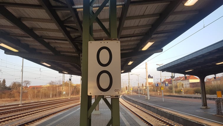 km 0,0 (Gegenrichtungsgleis) in Weimar