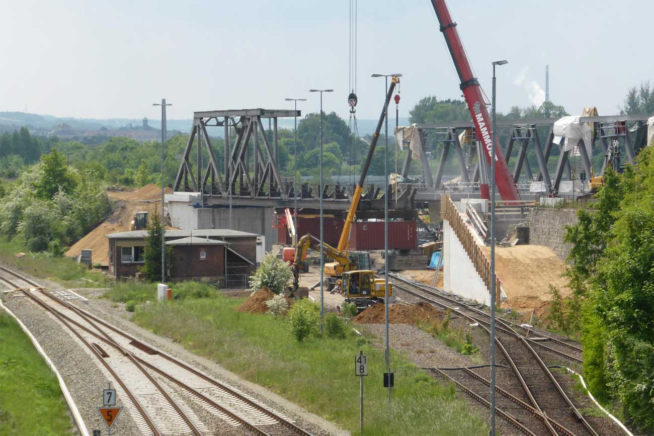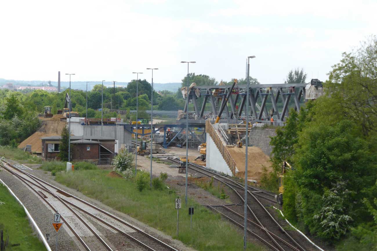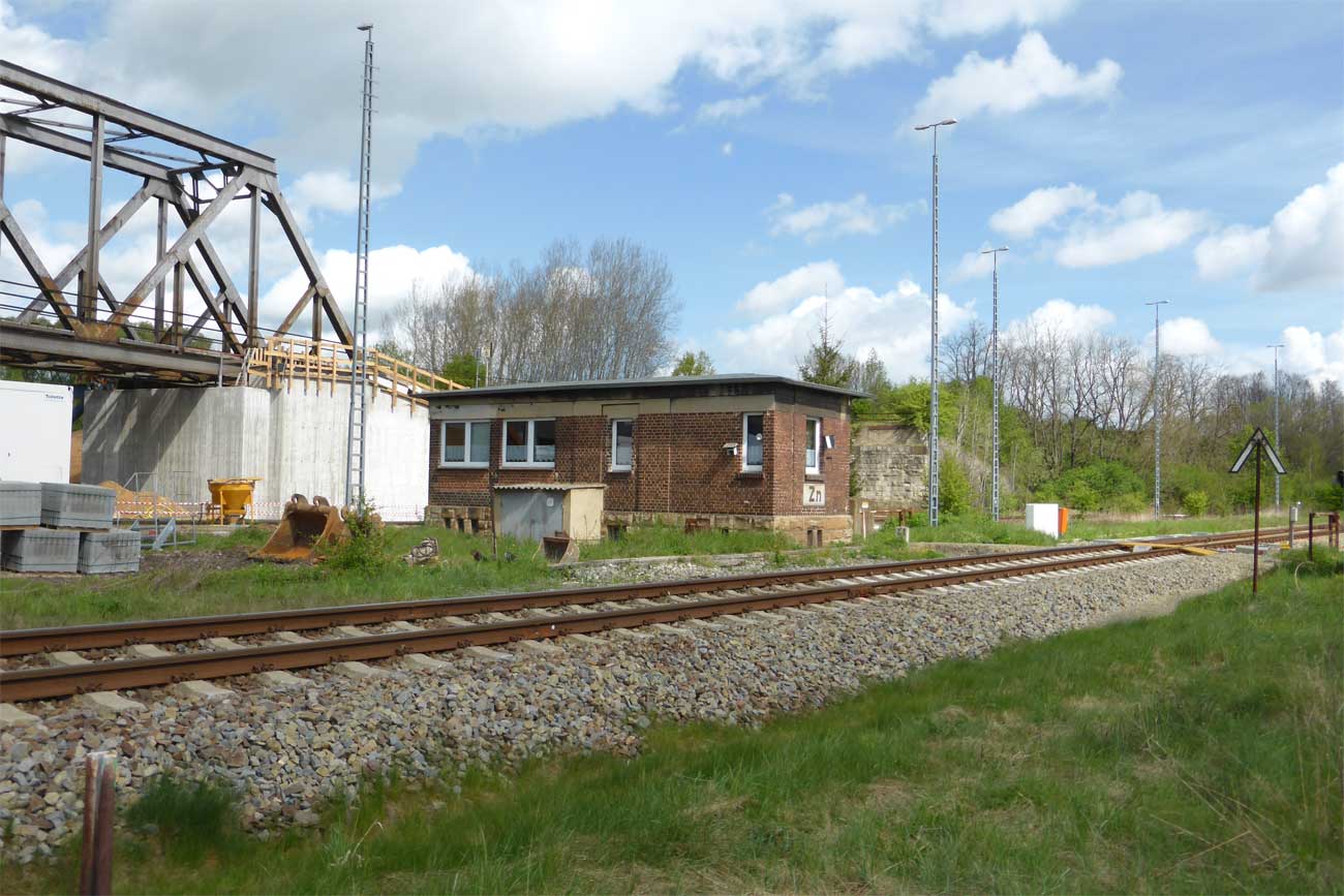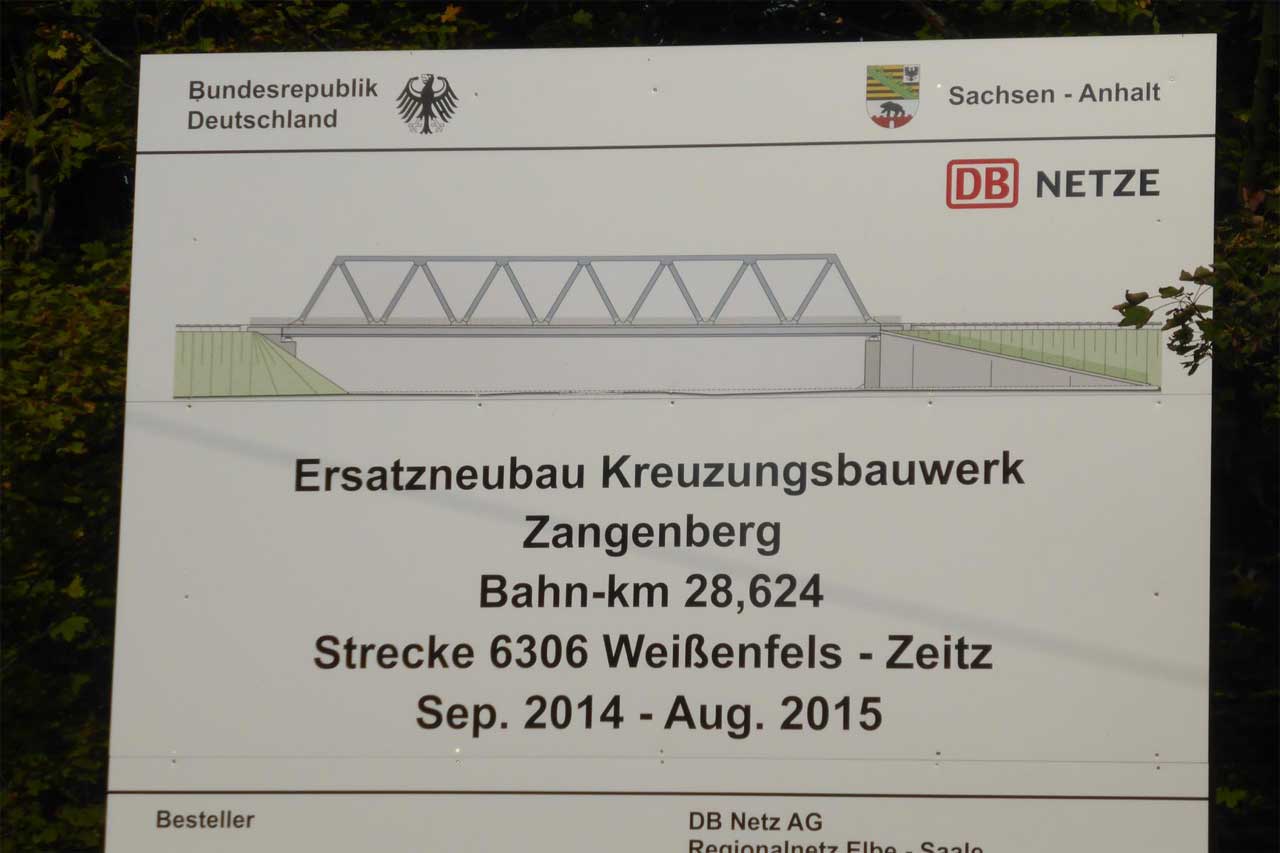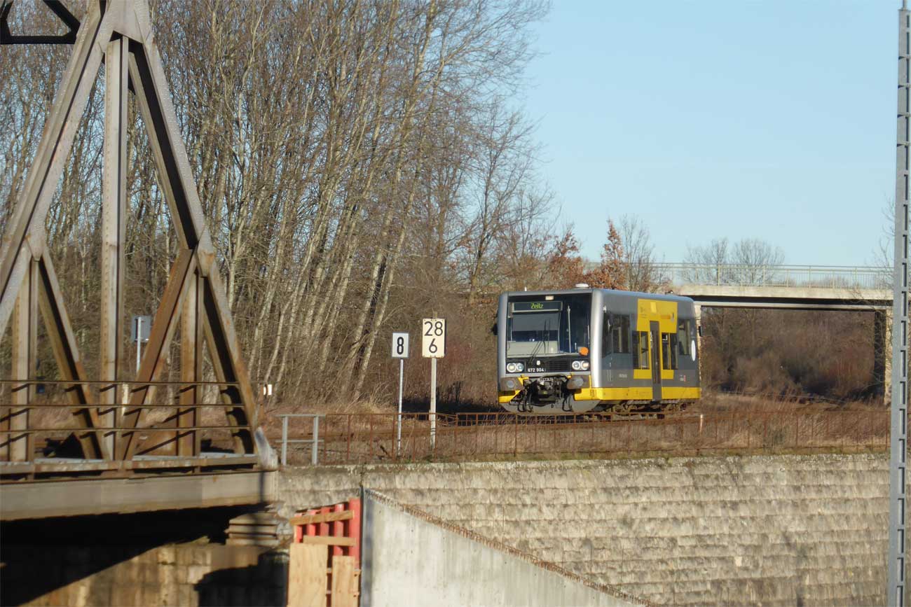 - Über die Brücke verlaufen das Hauptgleis der Strecke Weißenfels - Zeitz von und zum Zeitzer Pbf (vorderes Brückenteil) und das Ein- und Ausfahrgleis von und zum Zeitzer Gbf, Südseite