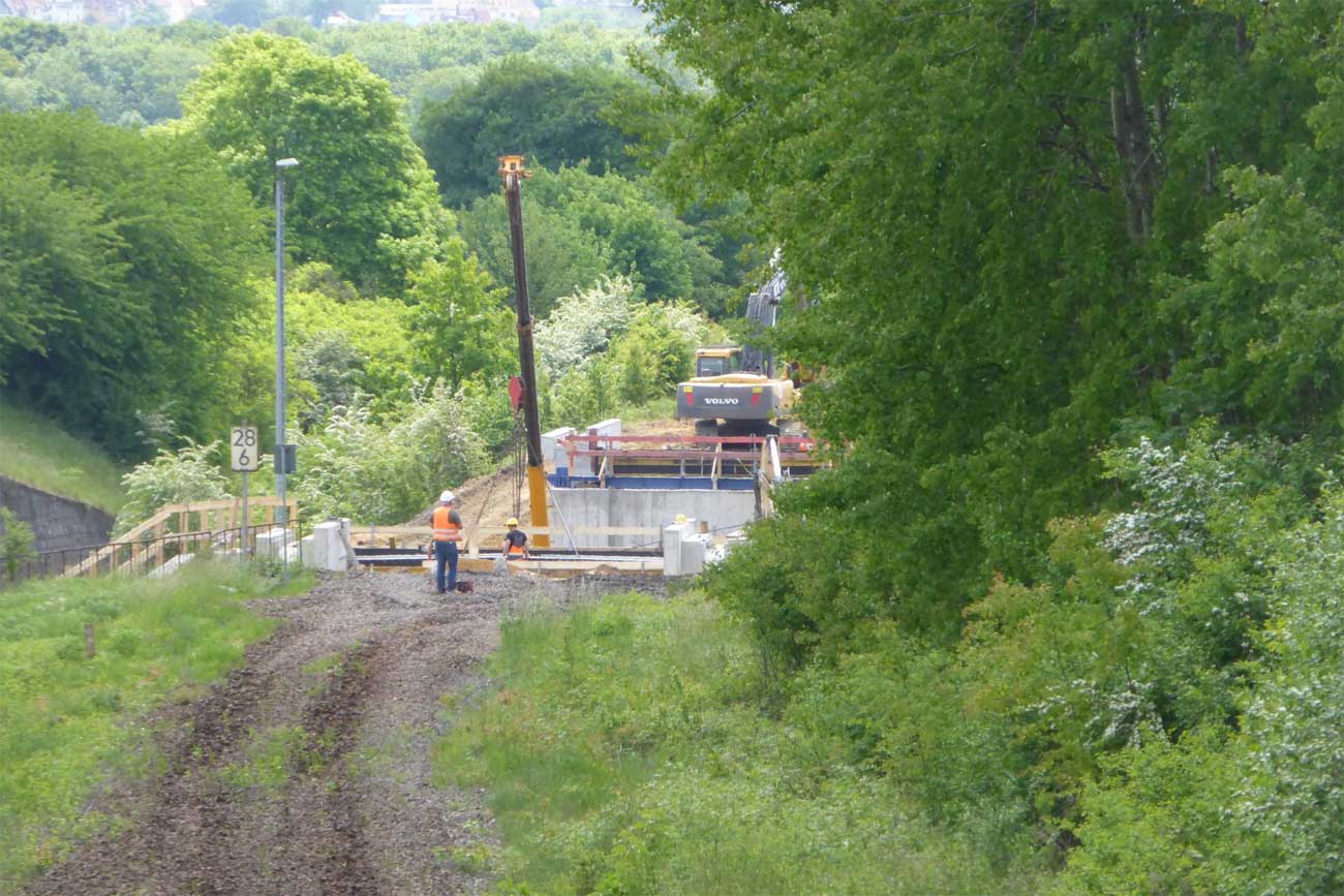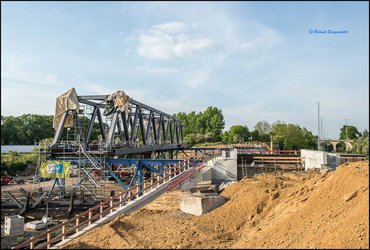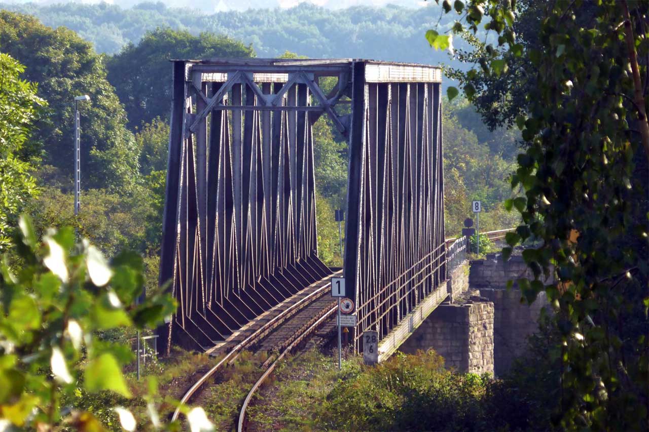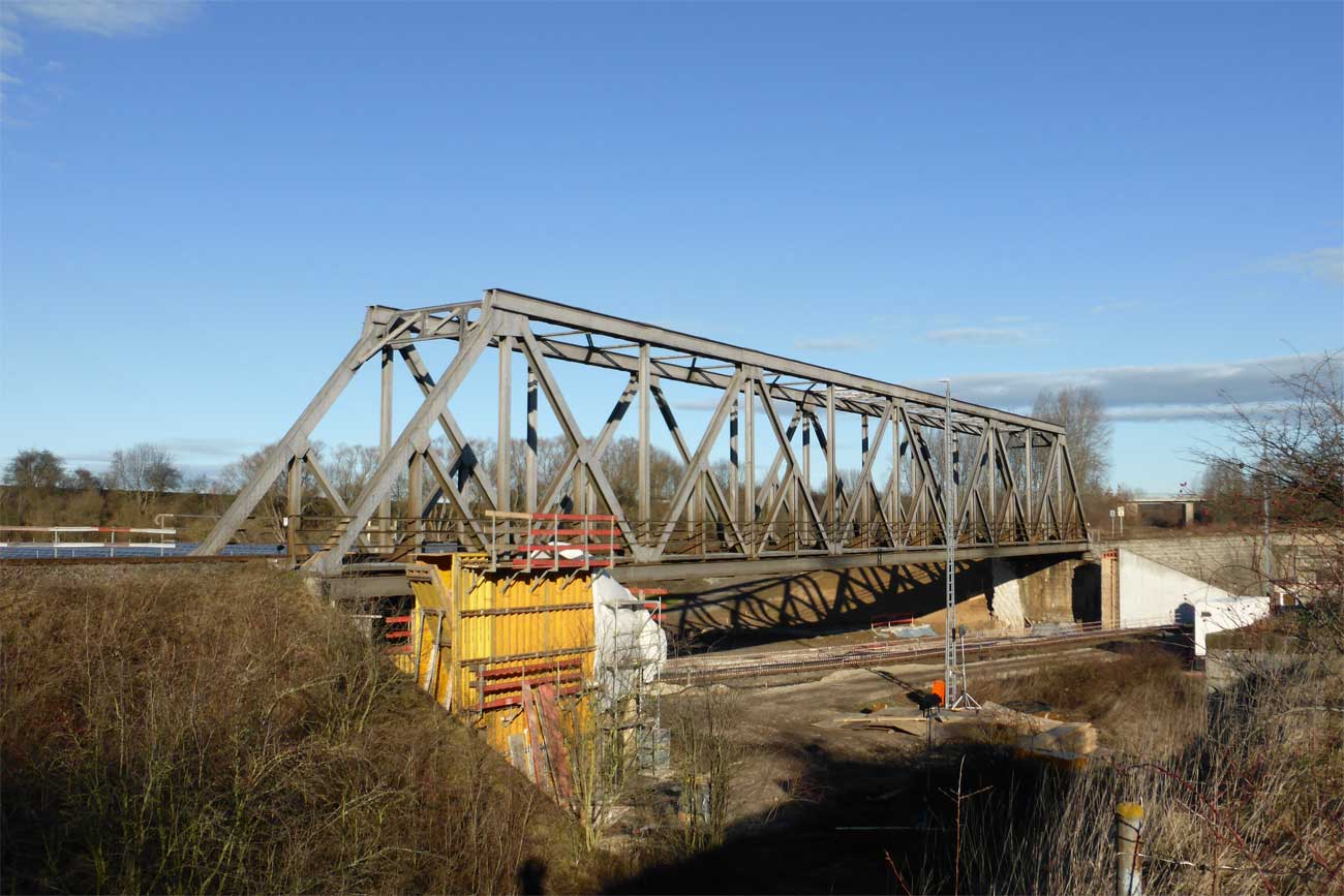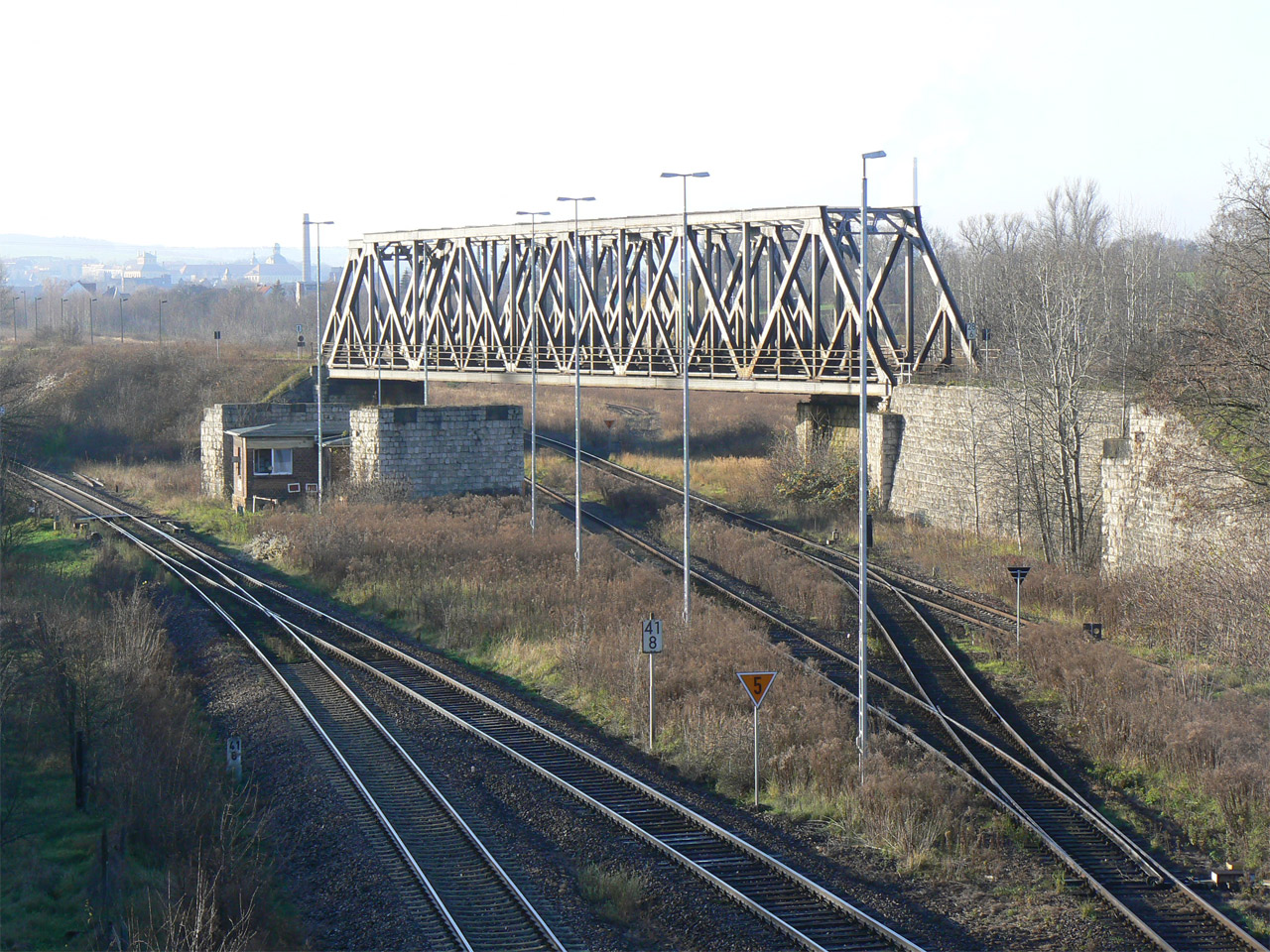 - Über die Brücke verlaufen das Hauptgleis der Strecke Weißenfels - Zeitz von und zum Zeitzer Pbf (vorderes Brückenteil) und das Ein- und Ausfahrgleis von und zum Zeitzer Gbf, Südseite