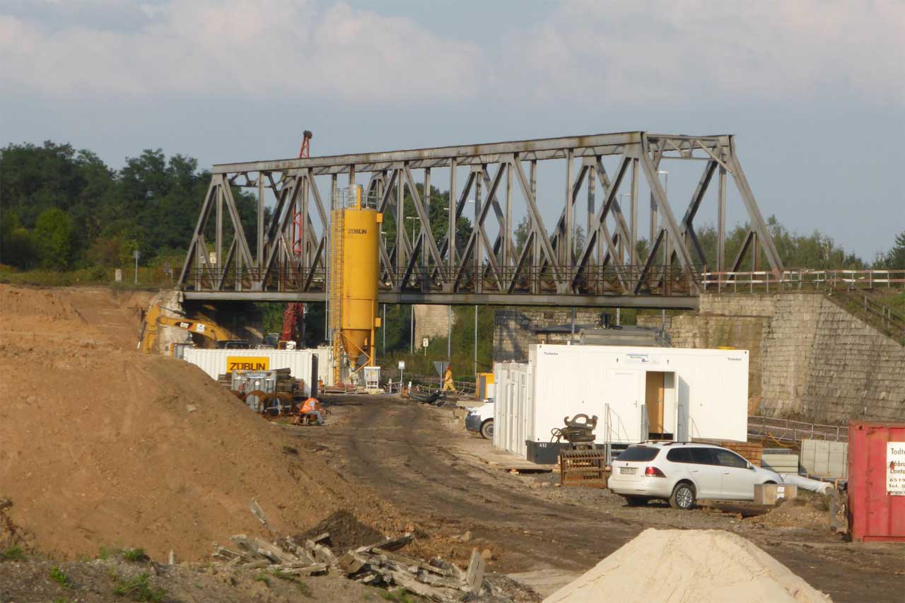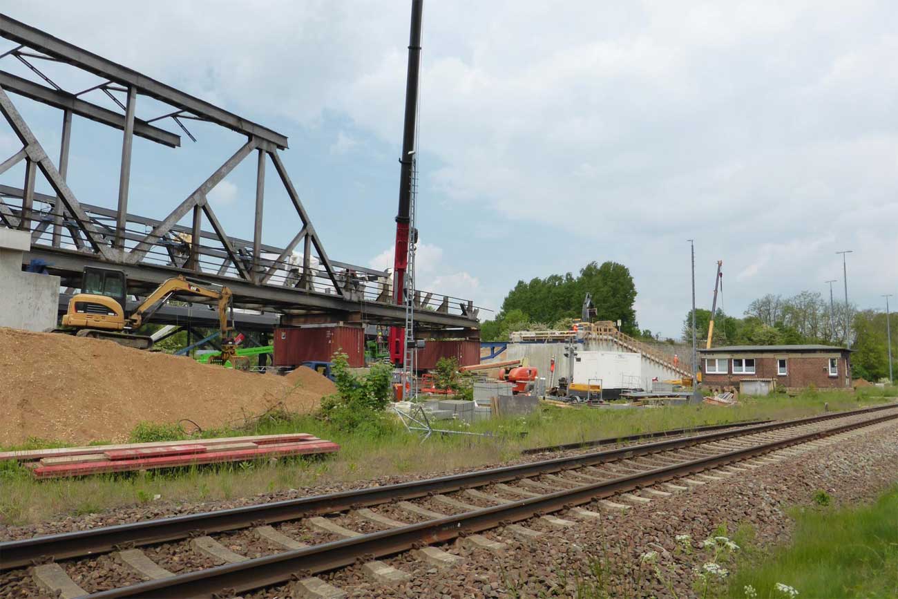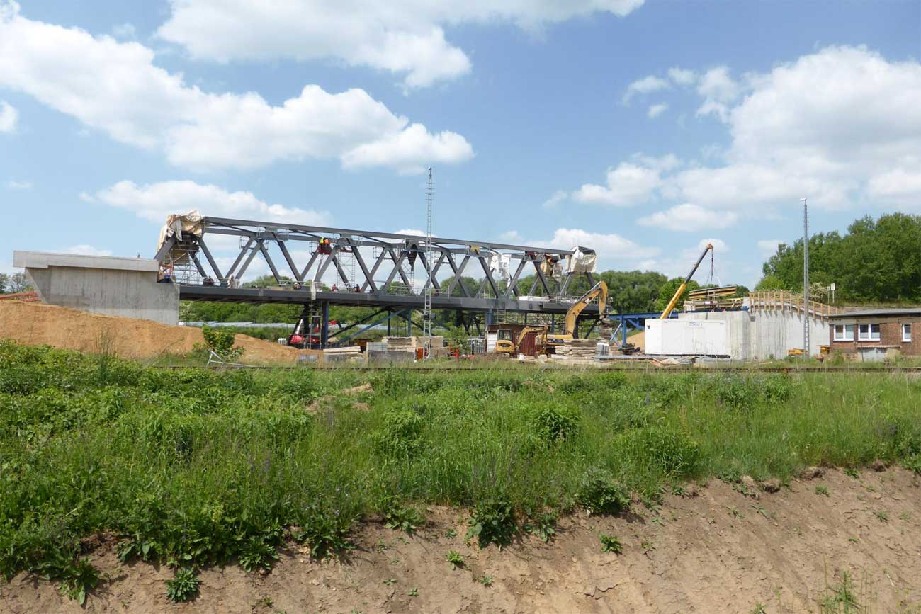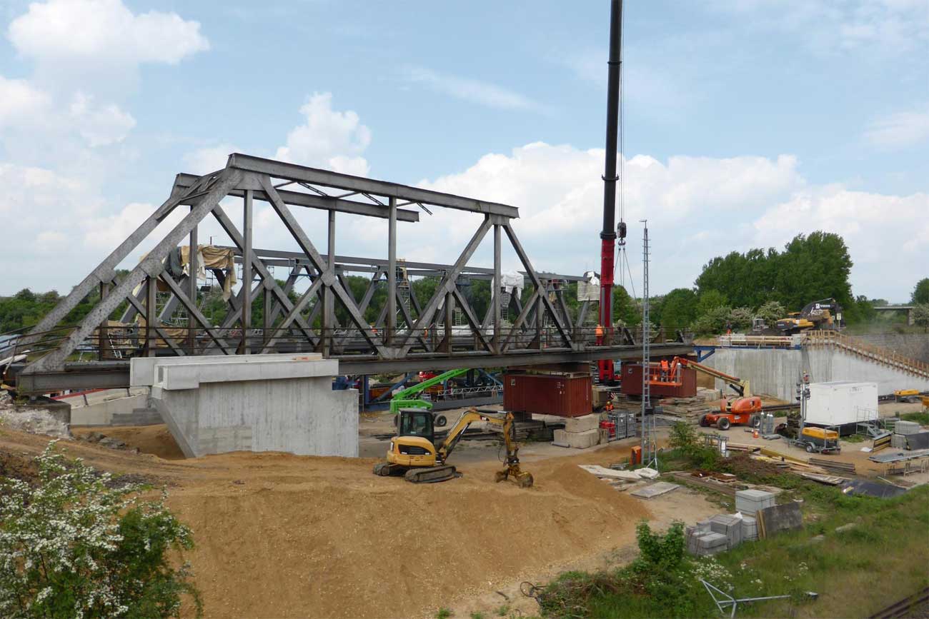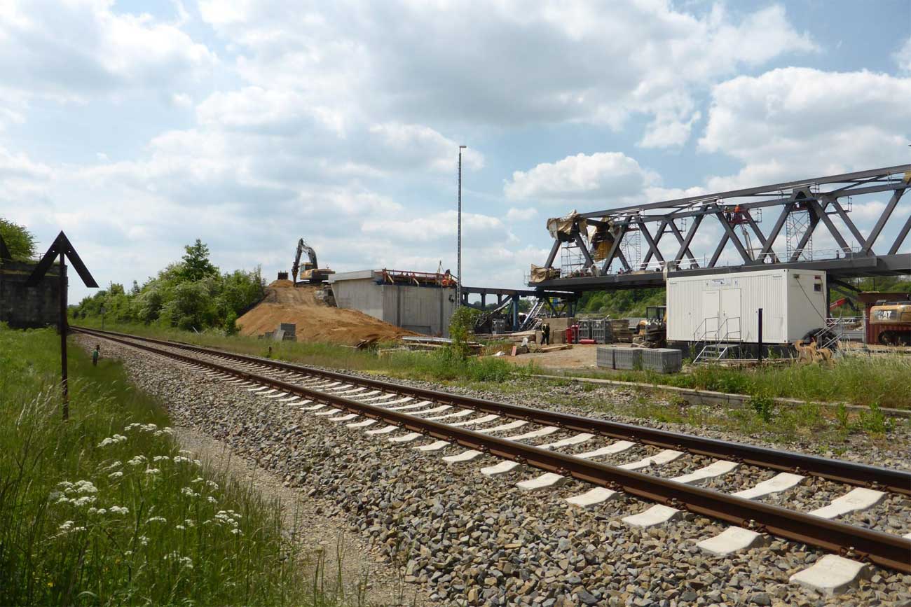 2 Überbauten von je 80 m, 2 von je 56 m und 1 Brücke von 17,1 m Stützweite; Gesamtgewicht des Auftrages 1065 t