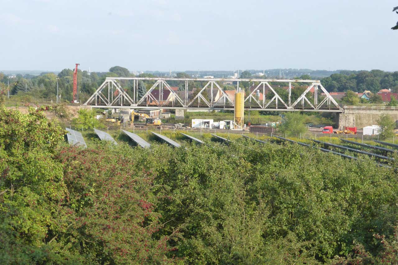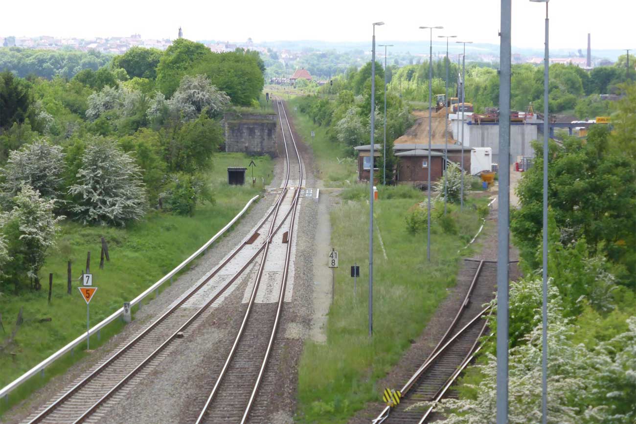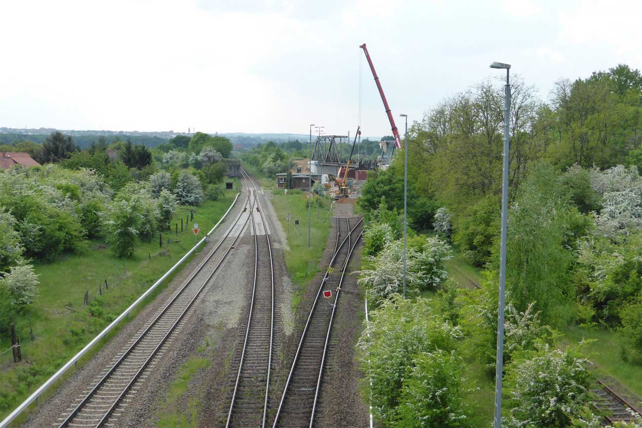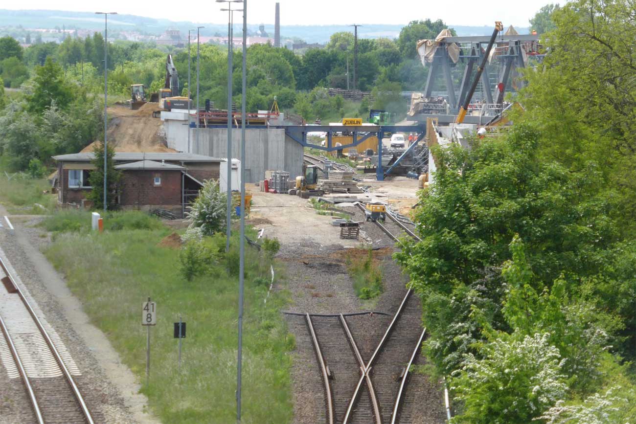 - Unter der Brücke die Gleise von und zum Zeitzer Gbf.