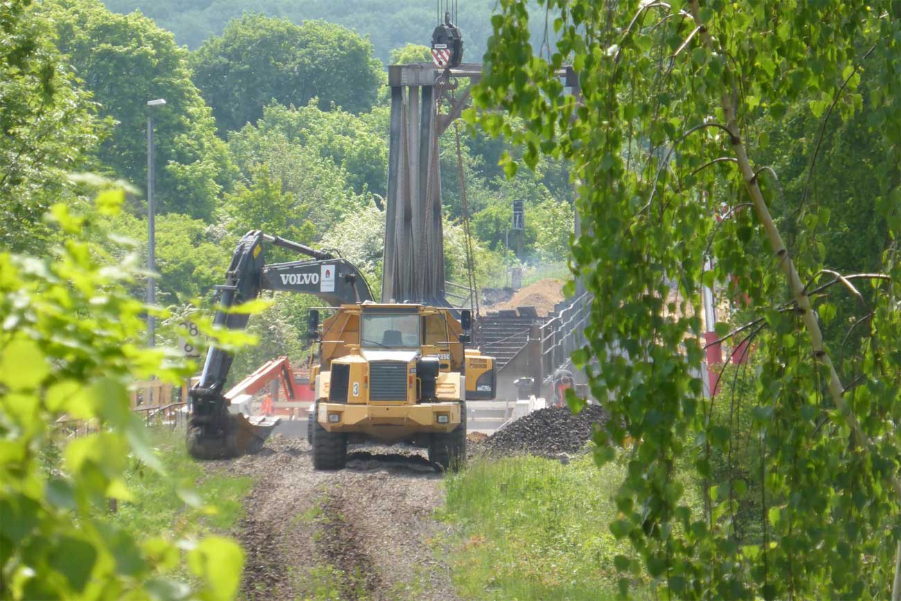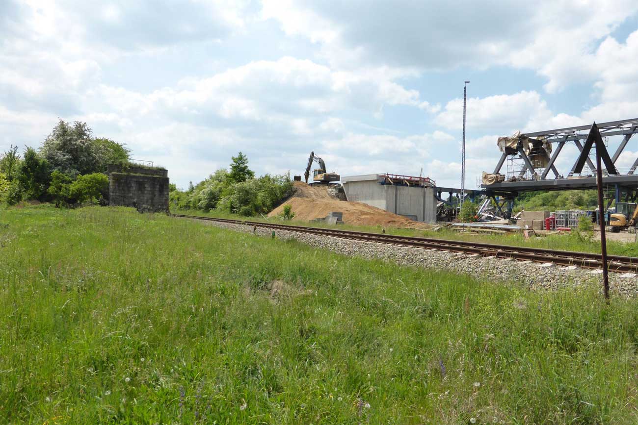 - In Vordergrund sind noch die Widerlager der Brücke für das Hauptgleis der Strecke Weißenfels - Zeitz vom Zeitzer Pbf zu sehen.