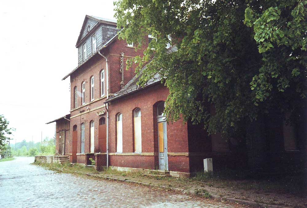 Das ehemalige Empfangsgebäude in Schkölen wurde bei einem Bombenangriff am 10. April 1945 schwer beschädigt. Anschließend notdürftig instandgesetzt, wurde es schließlich Anfang der 1970er Jahre abgerissen und auf seinen Grundmauern ein Wohnhaus gebaut, welches auf dem Bild zu sehen ist.
